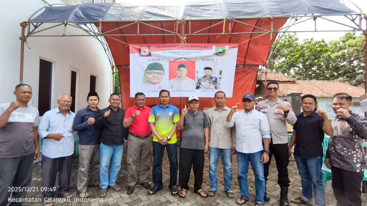 Cilegon - Bhabinkamtibmas Kelurahan Tamanbaru Polsek Ciwandan Polres Cilegon Polda Banten AIPDA Ediyanto menghadiri pemilihan Ketua RW 003 Lingkungan Kubang Lesung kelurahan Tamanbaru Kecamatan Citangkil Kota Cilegon, Minggu (21/12/2025).Kapolres Cilegon Polda Banten AKBP Dr. Martua Raja Taripar Laut Silitonga melalui Kapolsek Ciwandan Polres Cilegon Polda Banten KOMPOL Andi Suherman ditempat terpisah...