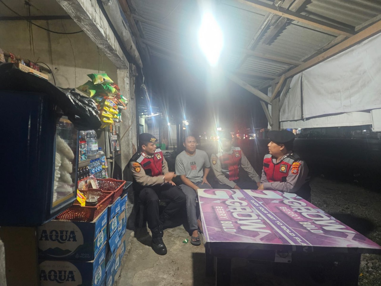 Personil Bhabinkamtibmas Aiptu Wawan setiabudi Polsek Purwakarta melakukan kunjungan menyapa warga di Lingkungan Pansepan, Kelurahan Tegal Bunder, Kecamatan Purwakarta, Kota Cilegon pada malam harI