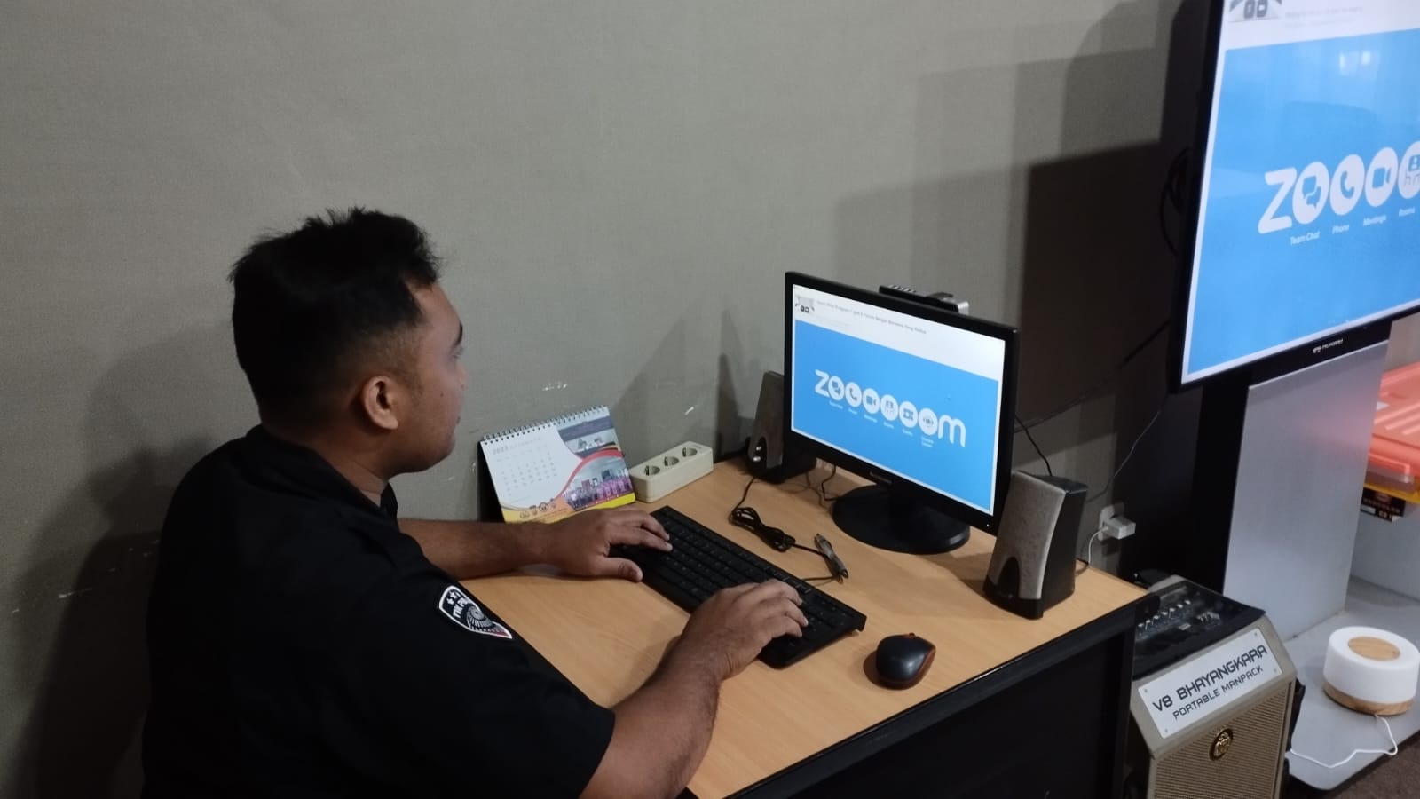 Anggota Tik Polres Cilegon Menyiapkan Sarana dan Prasarana Untuk Kegiatan Zoom meeting Dalam pelaksanaan kegiatan zoom meeting tersebut anggota TIK Polres Cilegon yang bertanggung jawab untuk menyiapkan peralatan zoom. Selain itu agar di tidak ada gangguan jaringan sebelum pelaksanaan anggota TIK melakukan pemeriksaan terhadap sarana dan prasarana tersebut . Satu jam sebelum kegiatan zoom meeting itu dimulai. Kapolres Cilegon AKBP. DR. MARTUA RAJA TARIPAR LAUT SILITONGA. melalui Kasi TIK IPTU Lukman menyampaikan bahwa “untuk menunjang kelancaran penyampaian informasi anggota TIk Polres Cilegon selalu memeriksa sarana dan prasarana tersebut, sebelum maupun pada saat pelaksanaan akan selalu di monitor”