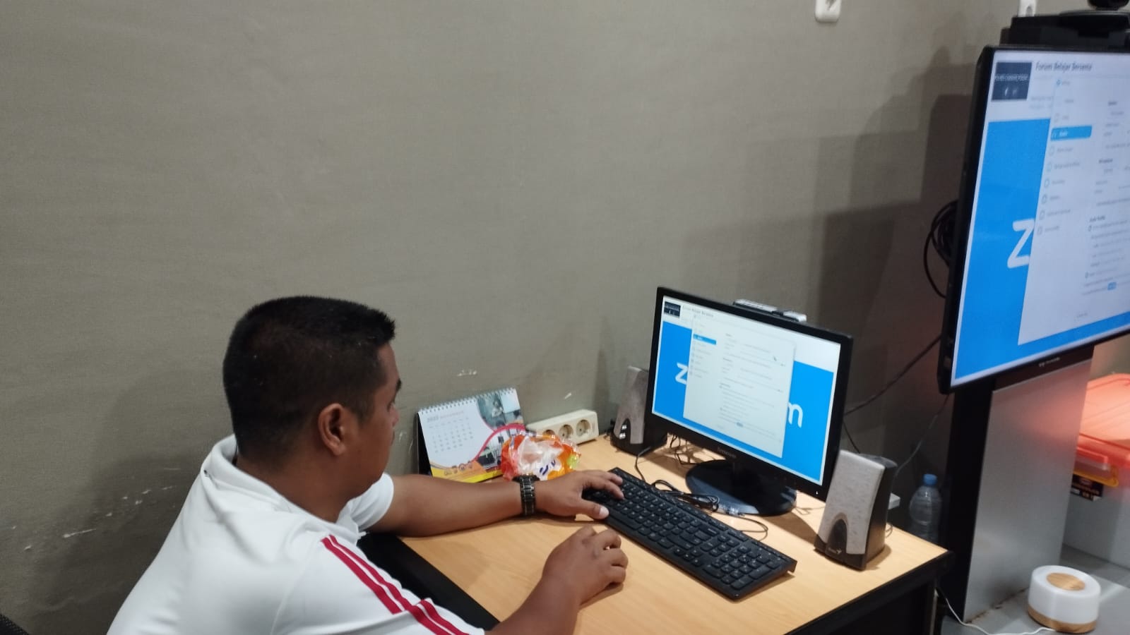 Anggota Tik Polres Cilegon Menyiapkan Sarana dan Prasarana Untuk Kegiatan Zoom meeting Dalam pelaksanaan kegiatan zoom meeting tersebut anggota TIK Polres Cilegon yang bertanggung jawab untuk menyiapkan peralatan zoom. Selain itu agar di tidak ada gangguan jaringan sebelum pelaksanaan anggota TIK melakukan pemeriksaan terhadap sarana dan prasarana tersebut . Satu jam sebelum kegiatan zoom meeting itu dimulai. Kapolres Cilegon AKBP. DR. MARTUA RAJA TARIPAR LAUT SILITONGA. melalui Kasi TIK IPTU Lukman menyampaikan bahwa “untuk menunjang kelancaran penyampaian informasi anggota TIk Polres Cilegon selalu memeriksa sarana dan prasarana tersebut, sebelum maupun pada saat pelaksanaan akan selalu di monitor