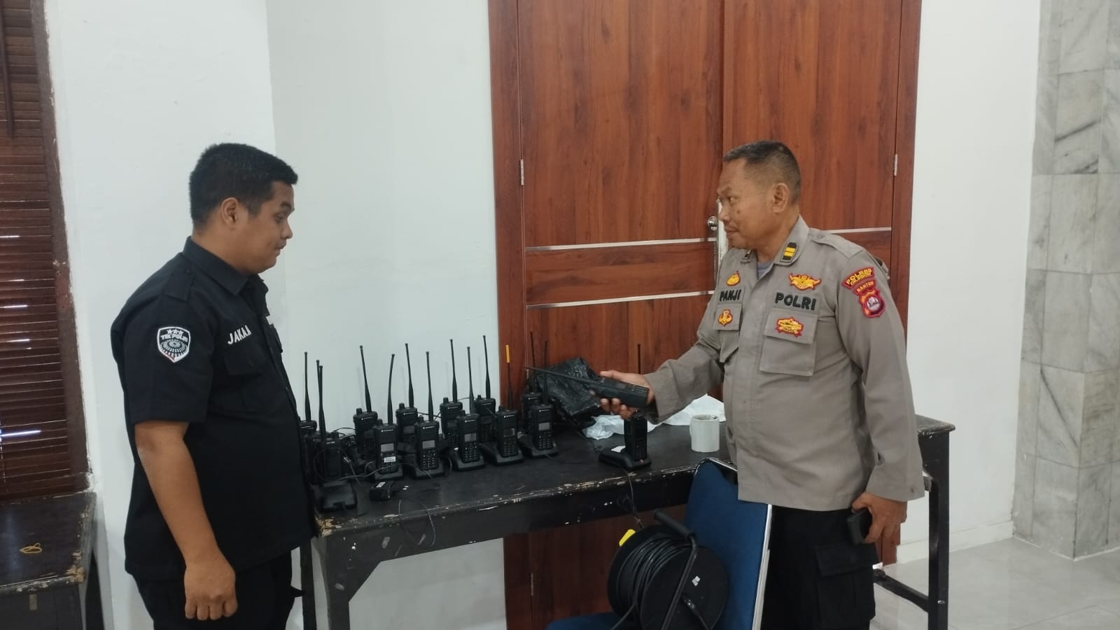 Anggota Tik Polres Cilegon Menyiapkan Sarana dan Prasarana Alkom Dalam pelaksanaan tugas tersebut anggota TIK Polres Cilegon yang bertanggung jawab untuk menyiapkan peralatan sarana alkom berupa handy talky. Selain itu agar di tidak ada gangguan pada jaringan, sebelum pelaksanaan anggota TIK melakukan pemeriksaan terhadap sarana dan prasarana tersebut . Satu jam sebelum sarana alkom digunakan. Kapolres Cilegon AKBP. DR. MARTUA RAJA TARIPAR LAUT SILITONGA. melalui Kasi TIK IPTU Lukman menyampaikan bahwa “untuk menunjang kelancaran penyampaian informasi anggota TIk Polres Cilegon selalu memeriksa sarana dan prasarana tersebut, sebelum maupun pada saat pelaksanaan akan selalu di monitor”