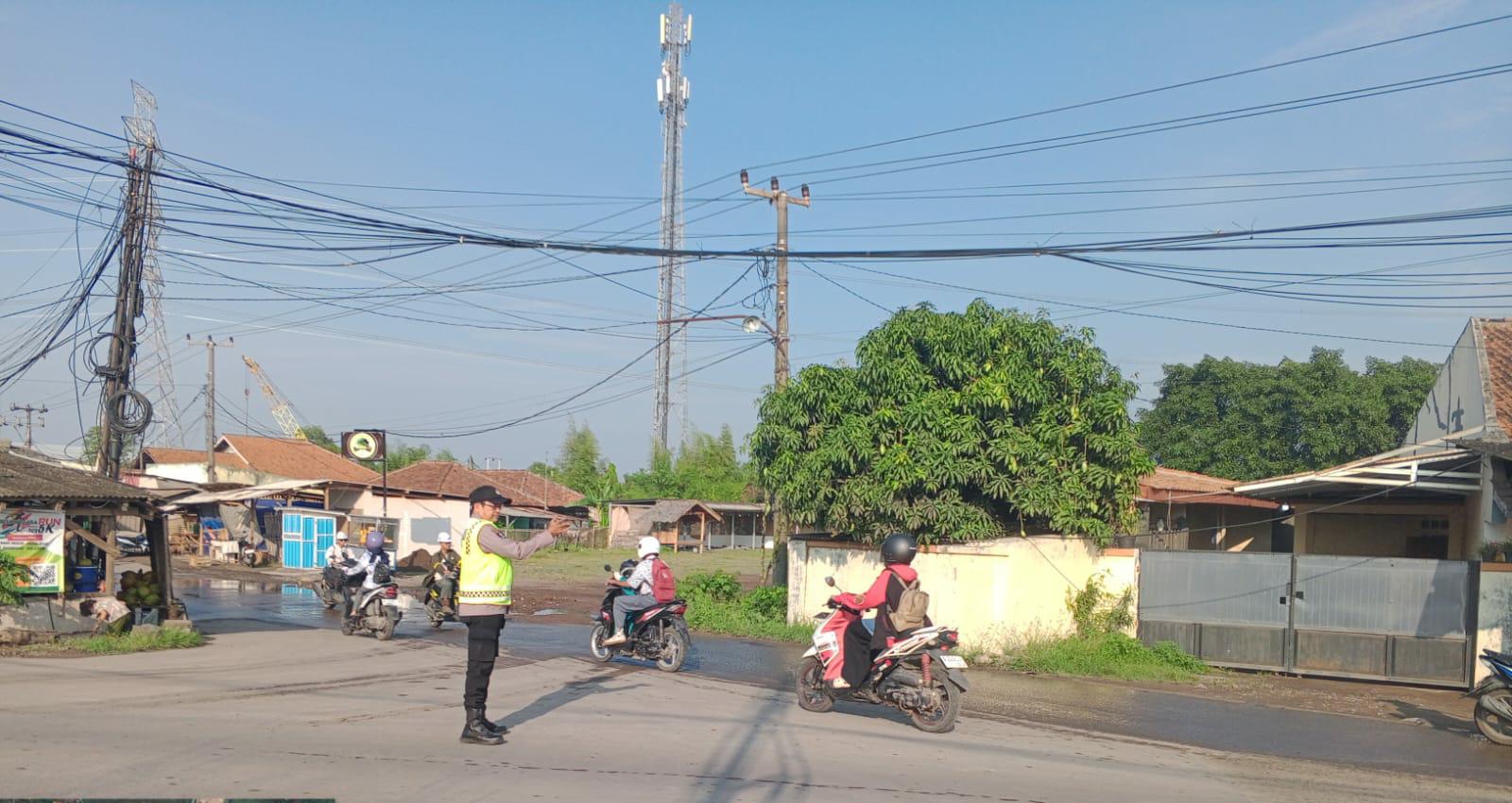 Strong Poin Pelayanan Pagi, Aipda Linggar dan Bripka Susilo Bhabinkamtibmas Ds Bojonegara Cegah Kemacetan dan Laka Lantas