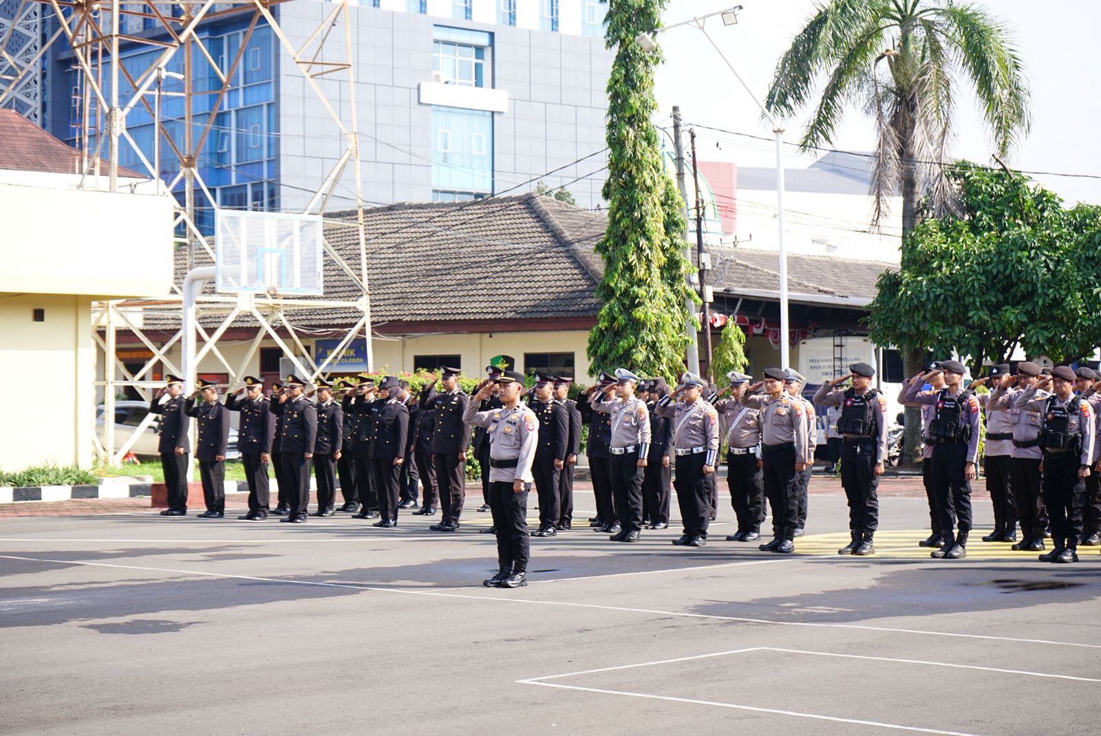 Upacara berlangsung khidmat dengan rangkaian pembacaan Pembukaan UUD 1945 dan Ikrar Hari Kesaktian Pancasila. Seluruh jajaran turut hadir, mulai dari para pejabat utama Polres, para Kapolsek, hingga personel gabungan dari berbagai satuan fungsi dan ASN Polri.