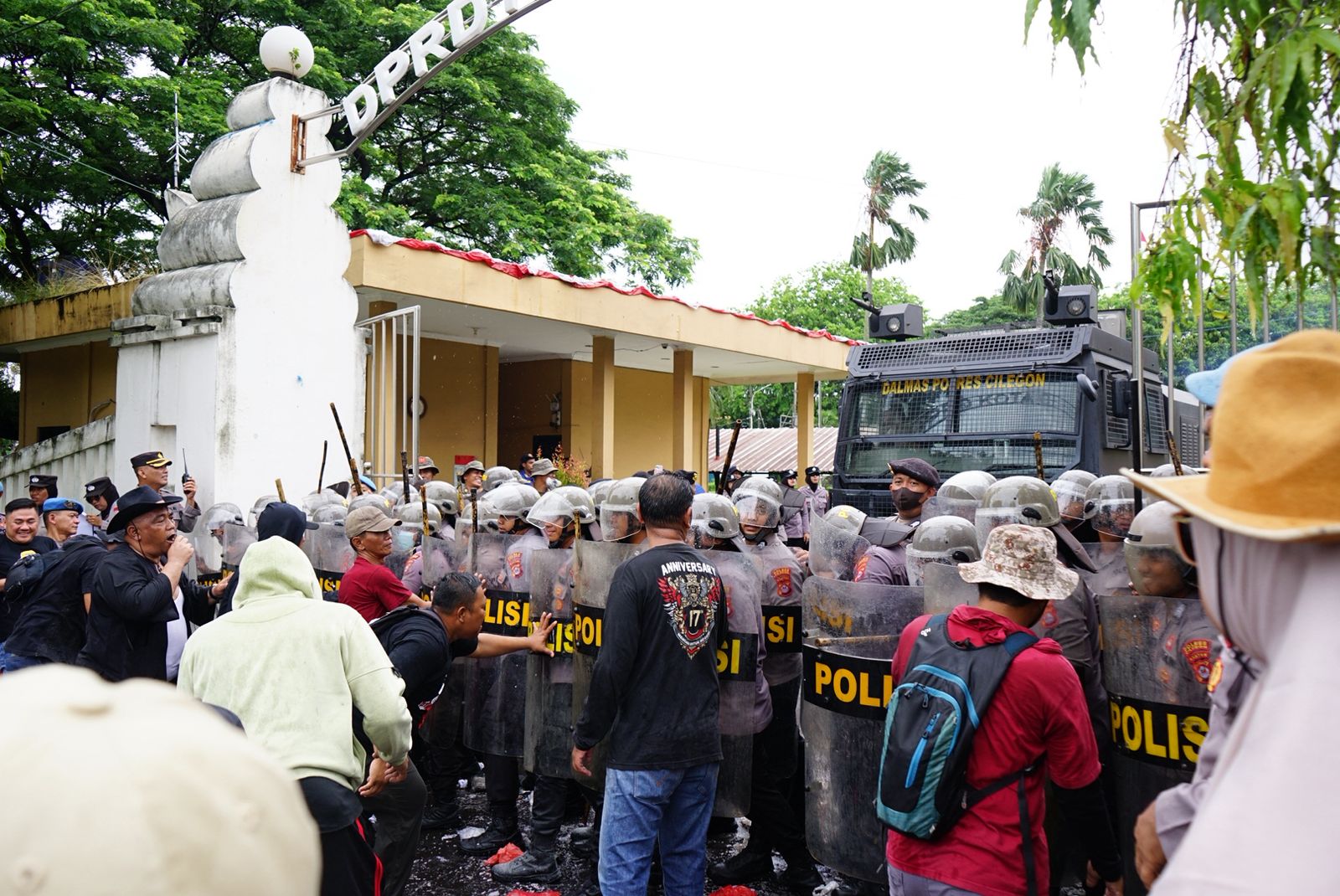 Cilegon – Polres Cilegon Polda Banten menggelar simulasi Sistem Pengamanan Kota (Sispam Kota) dalam rangka penanganan aksi unjuk rasa di Kota Cilegon tahun 2025. Kegiatan yang berlangsung di depan Kantor Walikota Cilegon dengan melibatkan unsur TNI, Polri, dan Pemerintah Daerah. Kamis (2/10/2025)