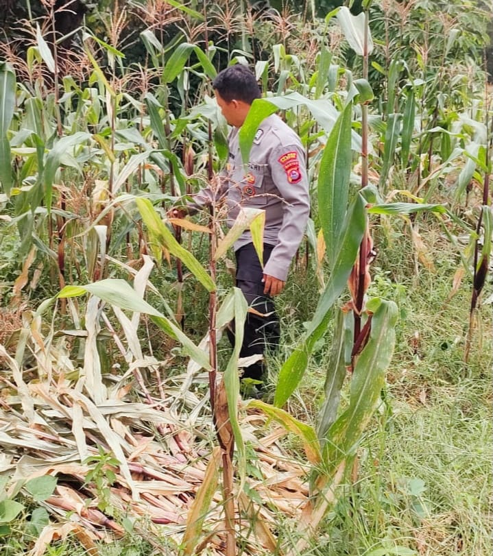 Bhabinkamtibmas Kel. Kotabumi Bantu Panen jagung bersama warga binaanya