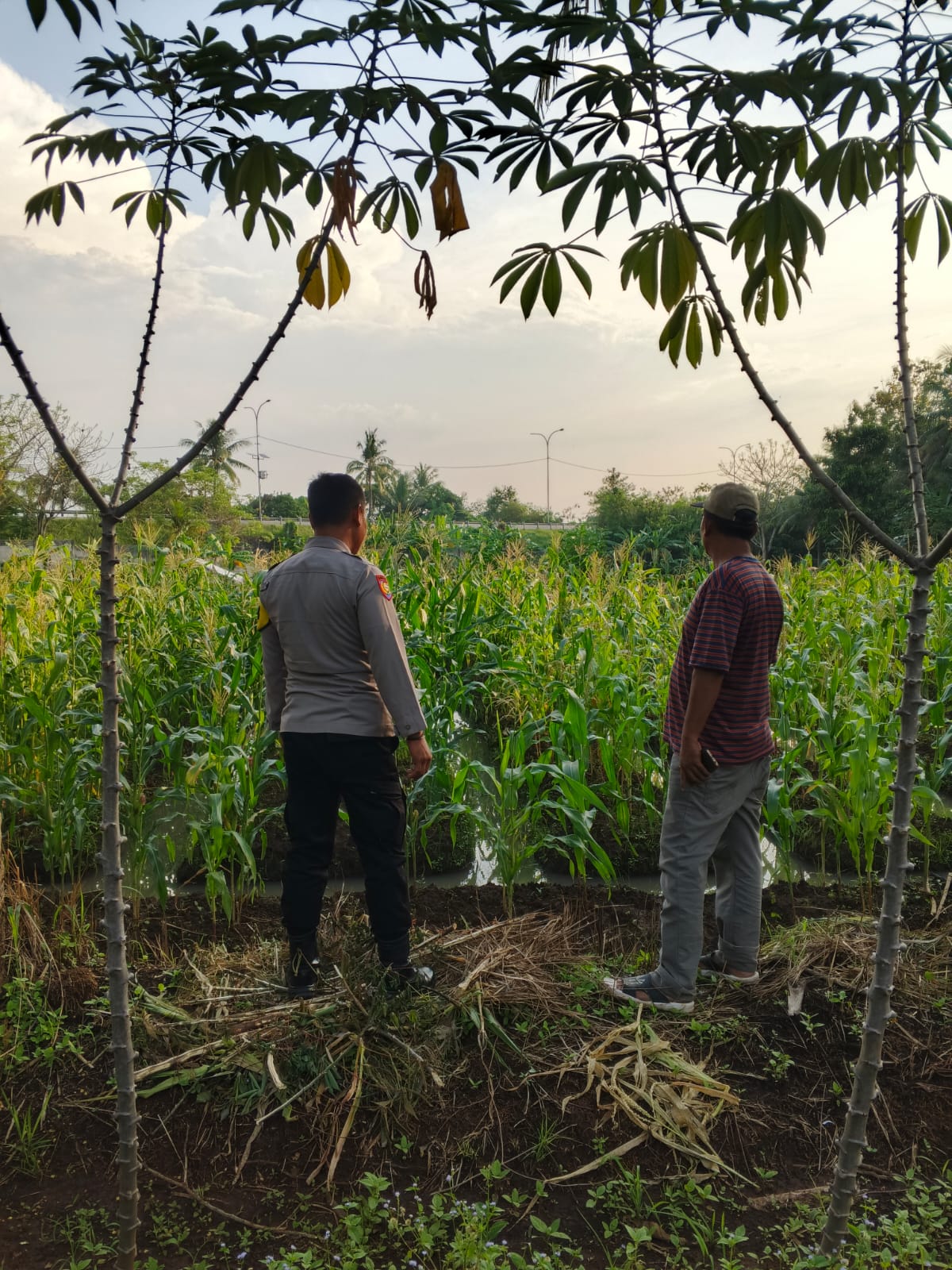 Cek lahan jagung secara periodik !!!! Bhabinkamtibmas Polsek Pulomerak bersama Poktan Rawaarum