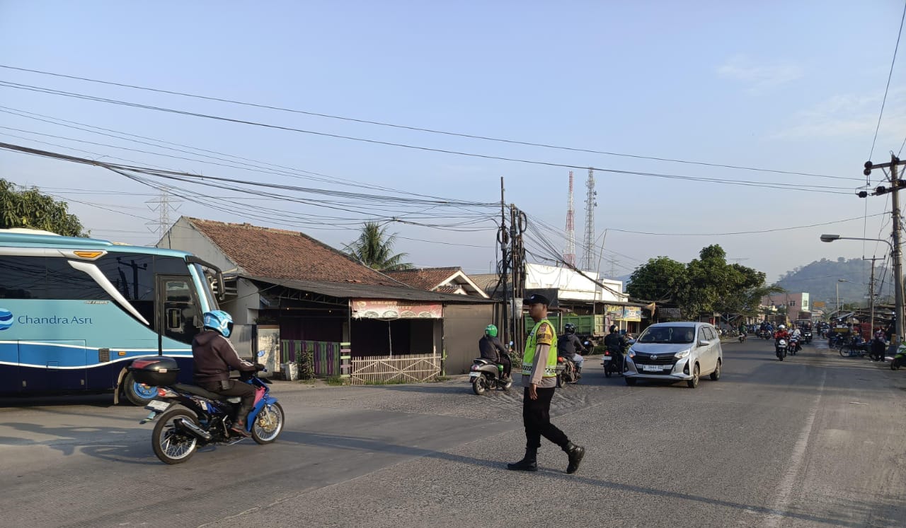 Cegah Kemacetan dan Laka Lantas, Bripka Zenal dan Brigadir Bagus Bhabinkamtibmas Polsek Bojonegara Laksanakan Strong Poin Pagi Di Simpang Bojonegara