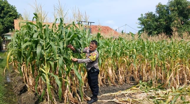 BHABINKAMIBMAS POLSEK PURWAKARTA BANTU PETANI PANEN JAGUNG