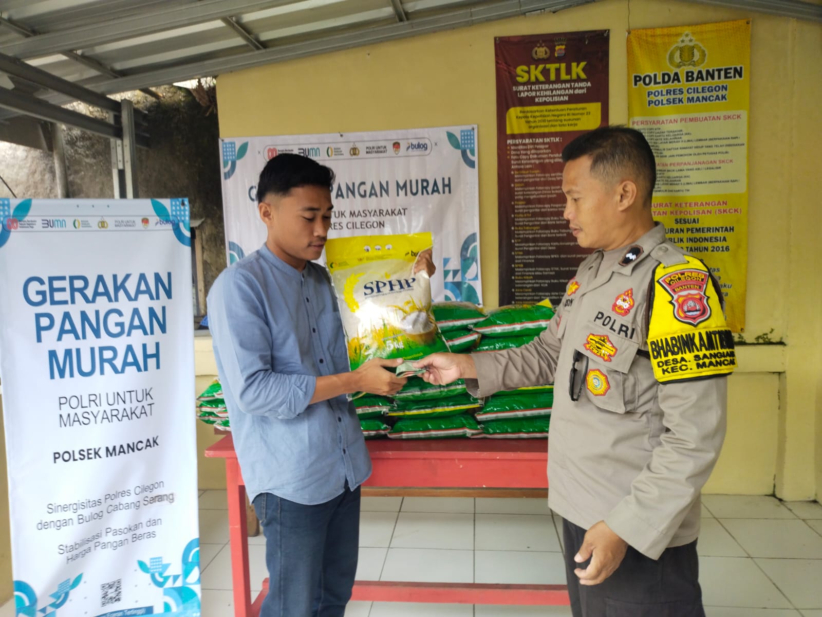 KANIT Reskrim beserta Bhabinkamtibmas Polsek Mancak Polres Cilegon laksanakan Gerakan Pangan Murah Beras SPHP
