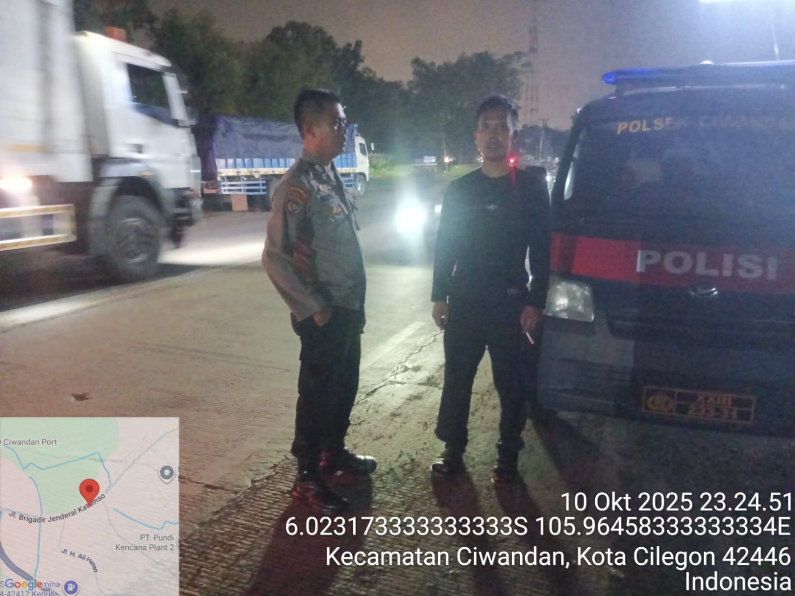 Cilegon - Polsek Ciwandan Polres Cilegon Polda Banten kembali menunjukkan komitmennya dalam menciptakan keamanan dan ketertiban masyarakat (kamtibmas) yang kondusif melalui Kegiatan Patroli Malam, Kegiatan ini dilakukan secara rutin dengan berkeliling di daerah hukum Polsek Ciwandan, Sabtu (11/10/2025).