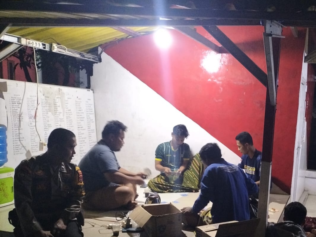 Cilegon  |  Dalam rangka mewujudkan situasi aman dan kondusif di wilayah kelurahan darkum Polsek Pulomerak memantau pelaksanaan kegiatan ronda malam di lingkungan  Mekarsari kecamatan Pulomerak, Minggu (12/10/25)