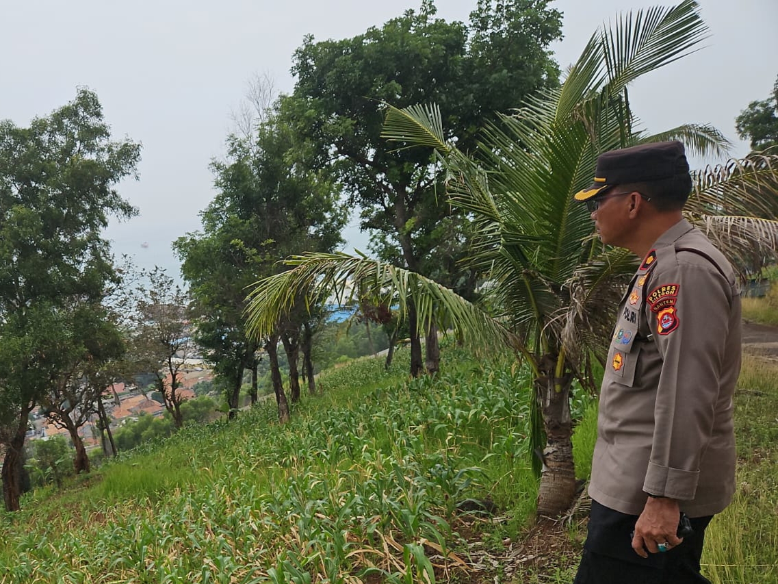 Oleh sebab itu Kapolsek Pulomerak bersama bhabinkamtibmas polsek Pulomerak bersama masyarakat Kel. Lebakgede kec. Pulomerak meninjau lahan jagung, ujarnya