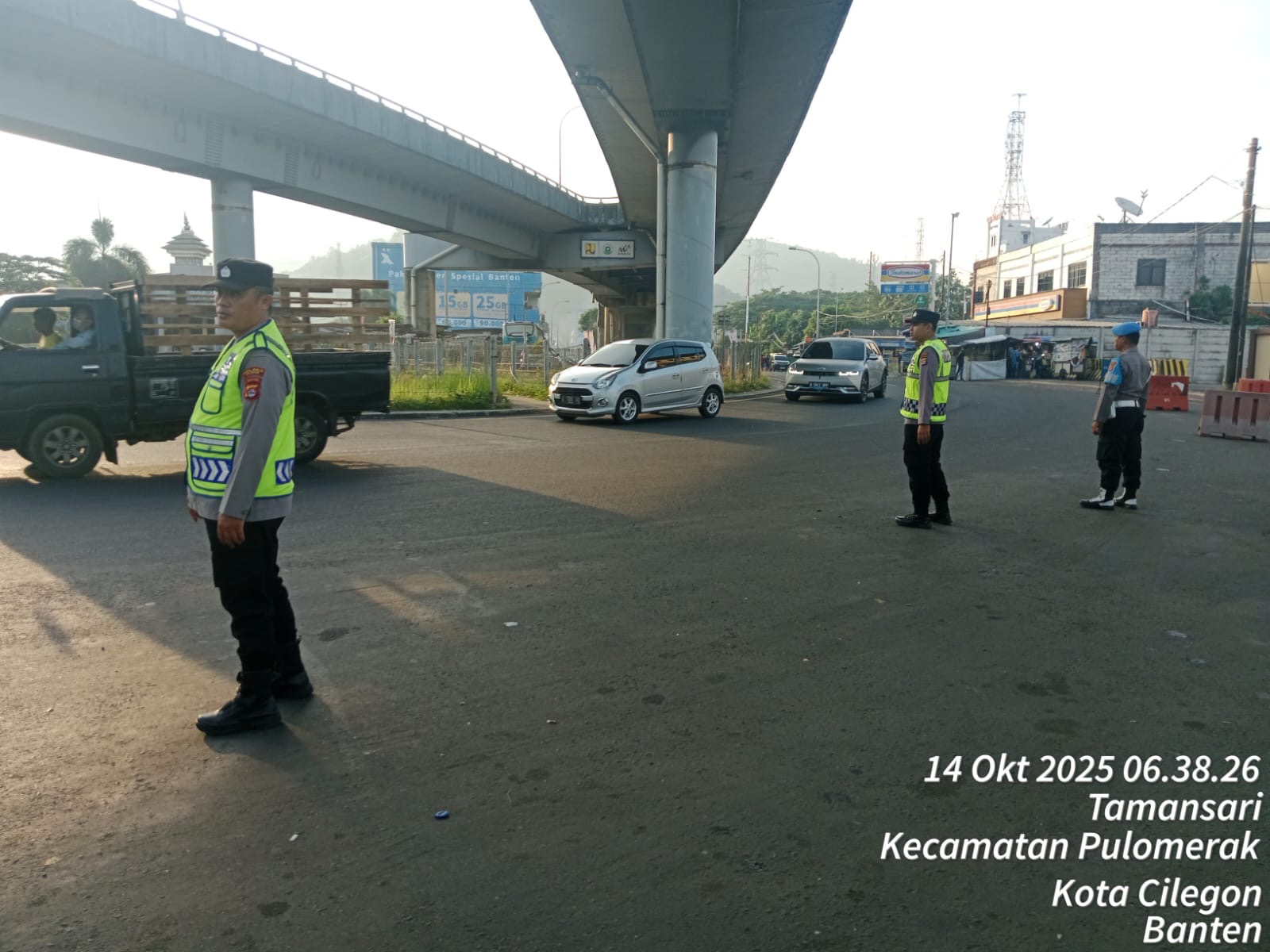 Cilegon - Dalam rangka peningkatan pelayanan prima kepada masyarakat, Kskp Merak Polres Cilegon Polda Banten melaksanakan pengaturan antrian R4 yang akan masuk ke Kapal Ferry di Pelabuhan Merak, Selasa (14/10/2025).