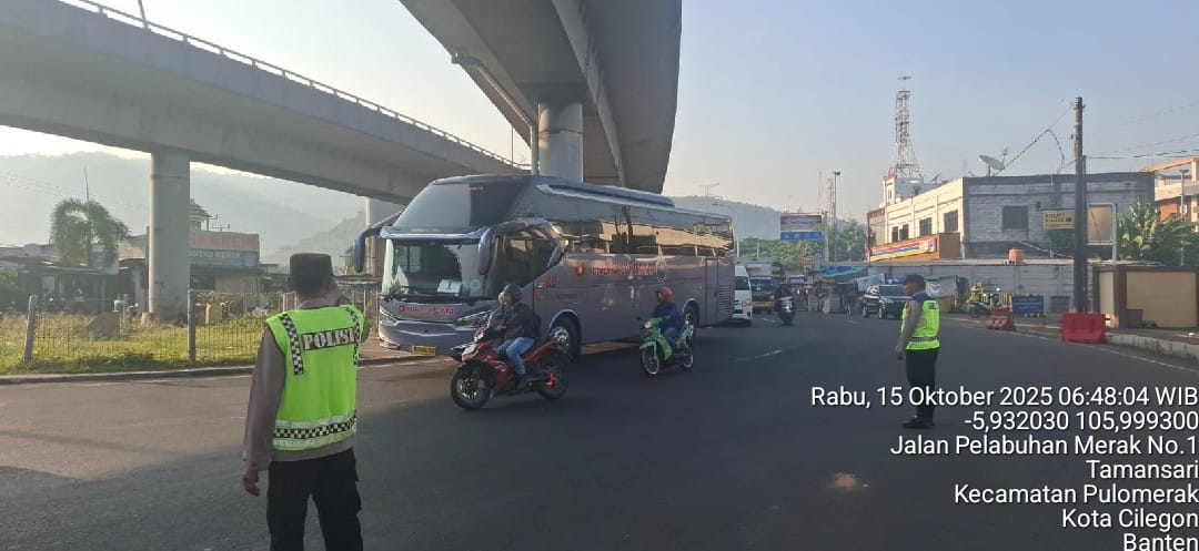 Pengaturan Kendaraan di Laksanakan Personil Polsek Kskp Merak Polres Cilegon Polda Banten