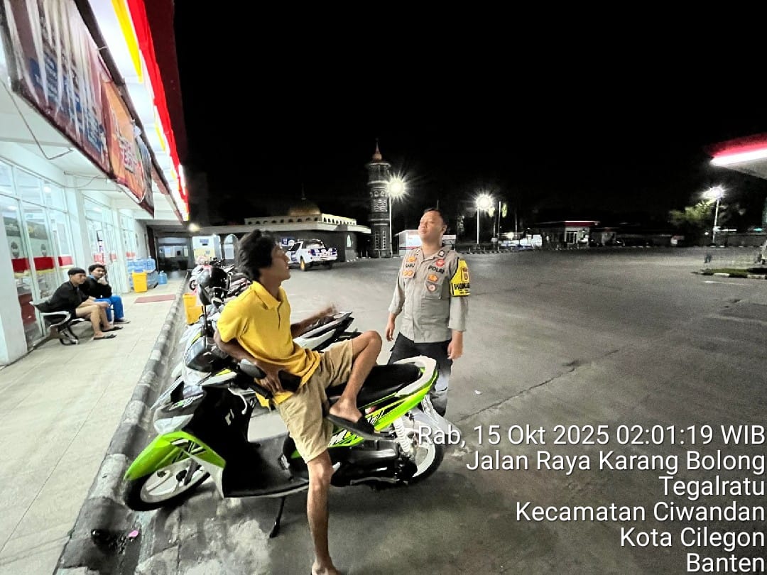 Cilegon - Personil Polsek Ciwandan Polres Cilegon Polda Banten melaksanakan patroli malam untuk mengantisipasi potensi kejahatan, khususnya pembobolan minimarket, di daerah hukum Polsek Ciwandan. Kegiatan ini bertujuan untuk meningkatkan keamanan dan memberikan rasa aman kepada masyarakat, Rabu (15/10/2025).