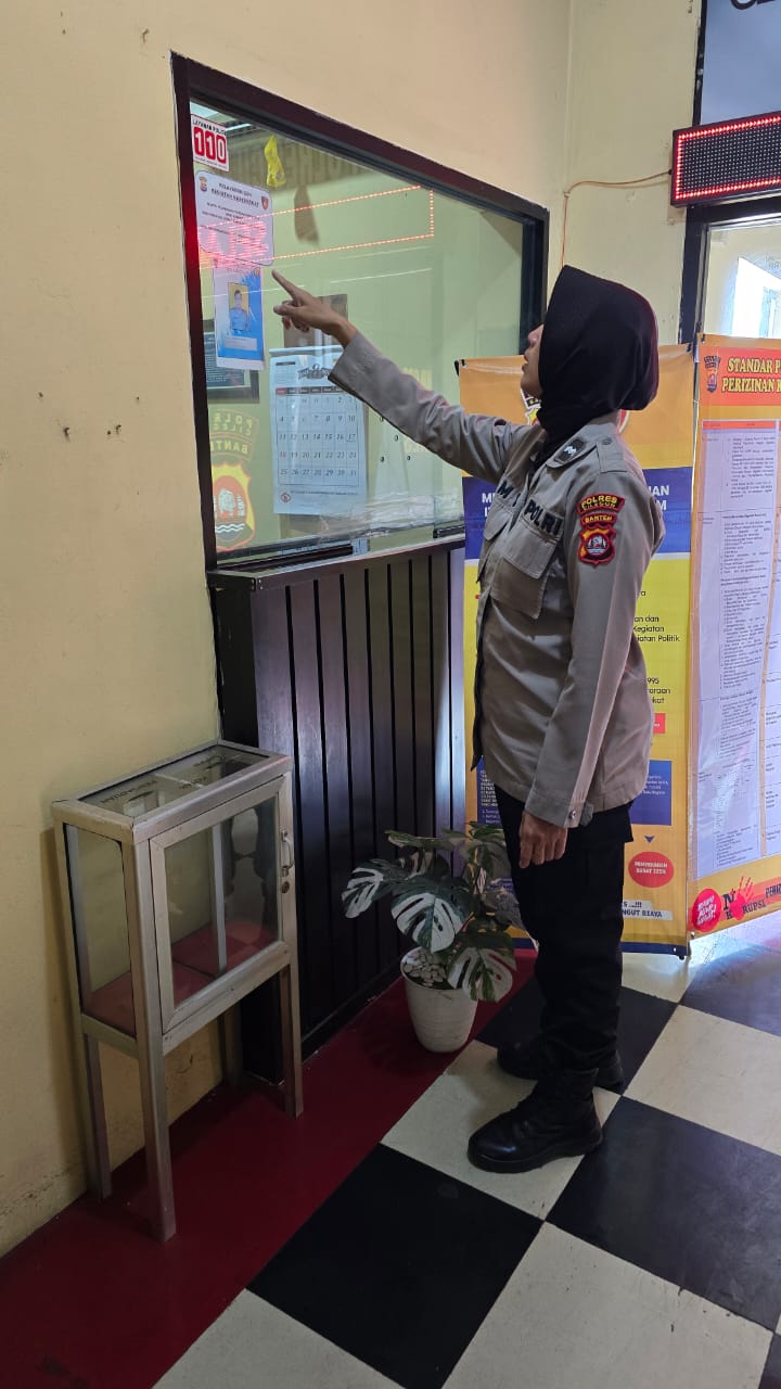 Cilegon,Polres Cilegon Polda Banten Pada minggu /19/10/2025 Pukul 09.00 Wib, Personil Siwas Polres Cilegon, Aipda Emi Prsetyo melakukan pengechekan terhadap Pelayanan ijin keramaian di sat ilntelkam Polres Cilegon.