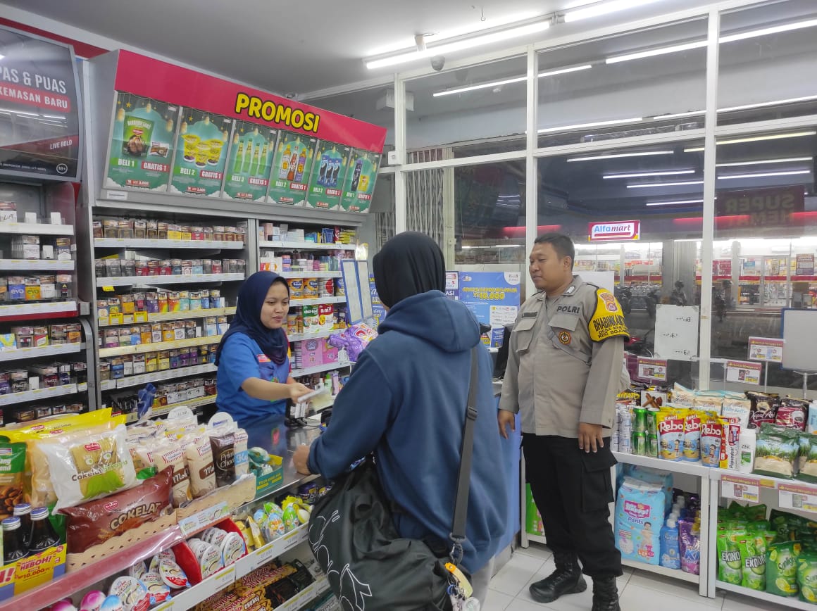 Cilegon ~ Patroli Malam hari, Bhabinkamtibmas Polsek Bojonegara Polres Cilegon Polda Banten melaksanakan patroli wilayah Malam hari dan sambang ke Indomart Mart di Desa Kertasana, Jumat (17/10/2025)
