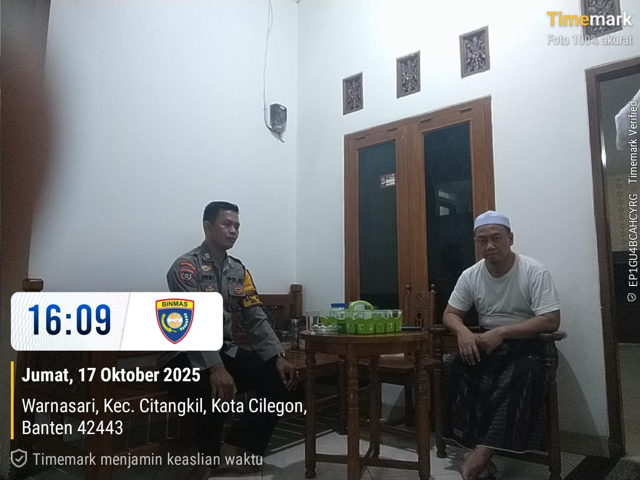 Cilegon - Bhabinkamtibmas Polsek Ciwandan Polres Cilegon Polda Banten Lakukan Sambang Malam guna mengantisipasi aksi kejahatan pada daerah binaan dan memberikan rasa aman dan nyaman kepada warga binaan, Sabtu (18/10/2025).