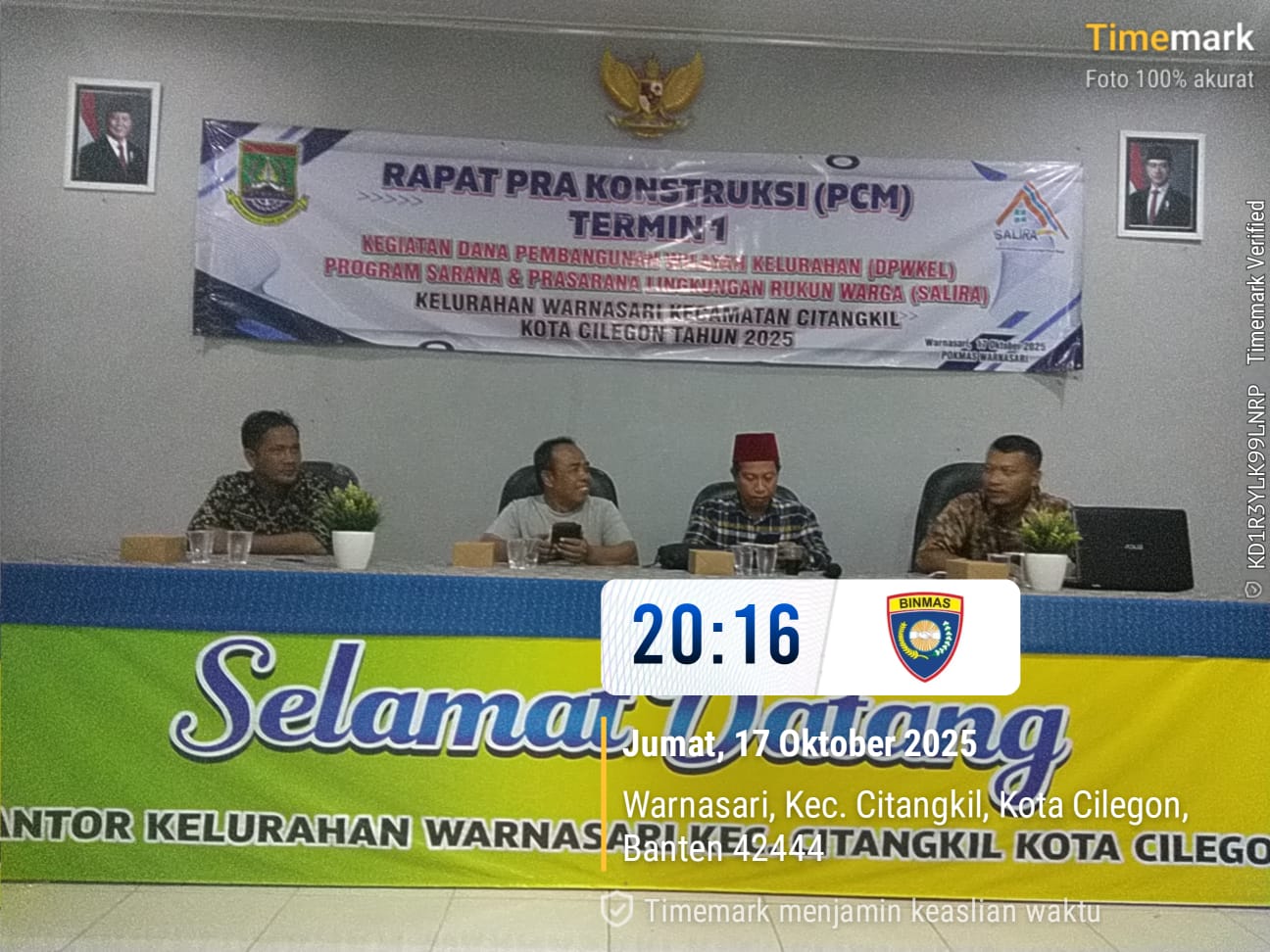 Cilegon - Bhabinkamtibmas Kelurahan Kebonsari Polsek Ciwandan Polres Cilegon Polda Banten AIPDA M. Enday Melaksanakan kegiatan Rapat Pra Kontruksi Pelaksanaan pembangunan Desa Kelurahan Kebonsari Kecamatan Citangkil kota Cilegon, Sabtu (18/10/2025).