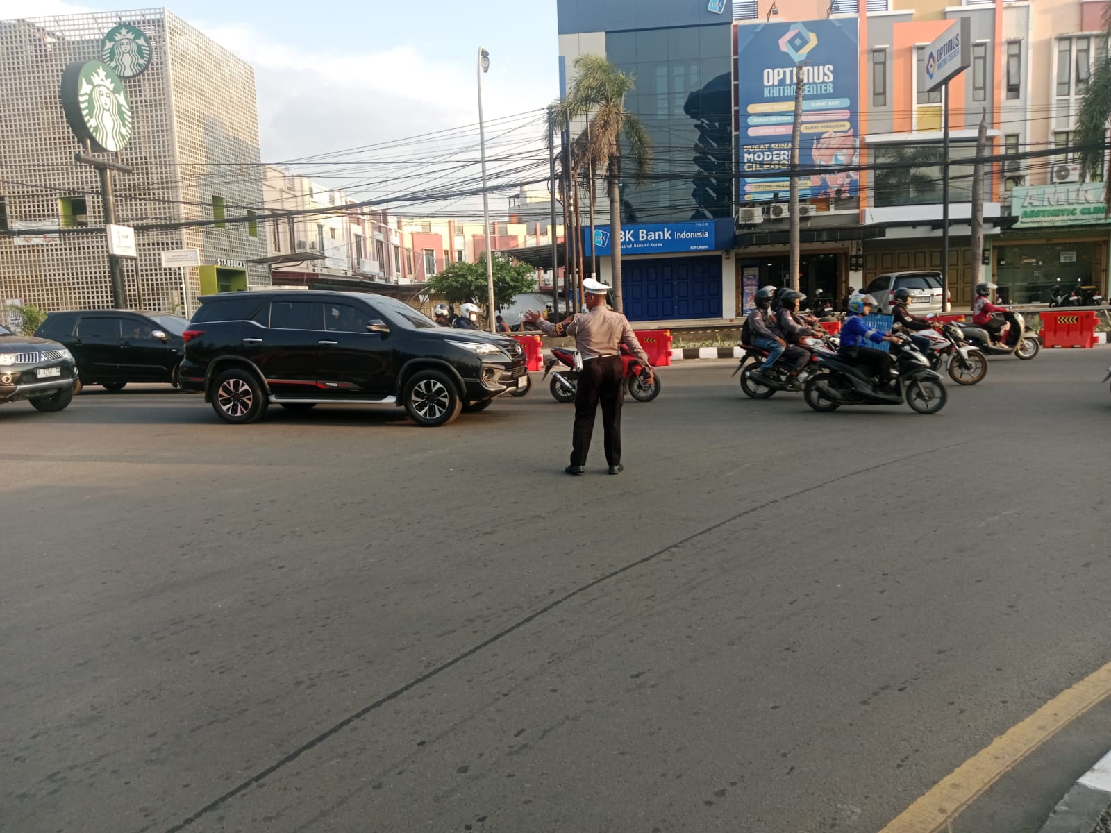 Satlantas Polres CIlegon Laksanakan Pengaturan Sore Hari