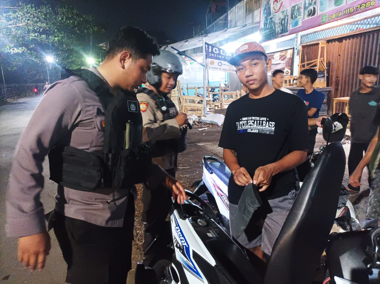 Kanit Turjawali Satsamapta Ipda Ferri dan Anggota Patroli Maung Presisi Sat Samapta Polres Cilegon menghimbau  kepada masyarakat kota Cilegon untuk selalu waspada dan meningkatkan keamanan di lingkungan sekitarnya guna mengantisipasi kejadian tindak pidana khususnya 3C agar terciptanya situasi yang aman dan kondusif. (Satsamapta)