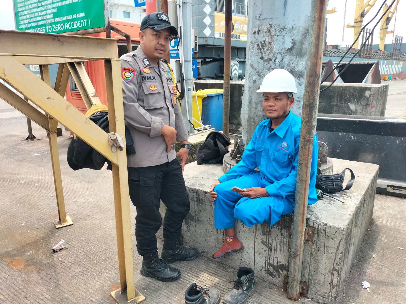 Jalin Silaturahmi, Bhabinkamtibmas Pelabuhan Polsek KP Banten berbincang ke Buruh Pelabuhan