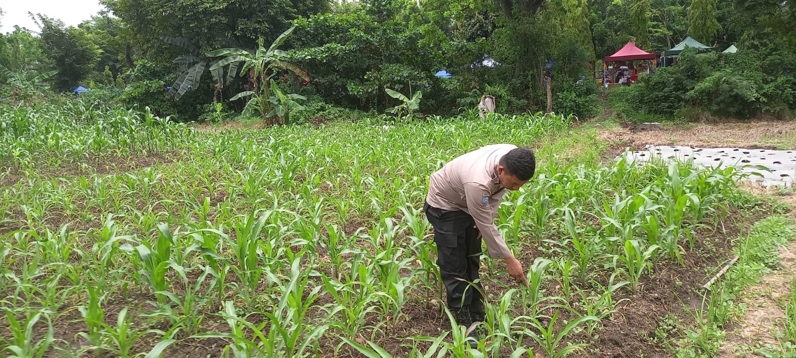 -POLRES CILEGON–Polda Banten. Bripka Agustoni, personel Bhabinkamtibmas Polsek Purwakarta, melaksanakan kegiatan pengecekan tanaman jagung di Kelurahan Kota Bumi, Kecamatan Purwakarta, Kota Cilegon. Kegiatan ini bertujuan untuk memastikan pertumbuhan tanaman jagung berjalan dengan baik dan memberikan hasil yang optimal bagi petani setempat.Rabu.(22-10-2025).