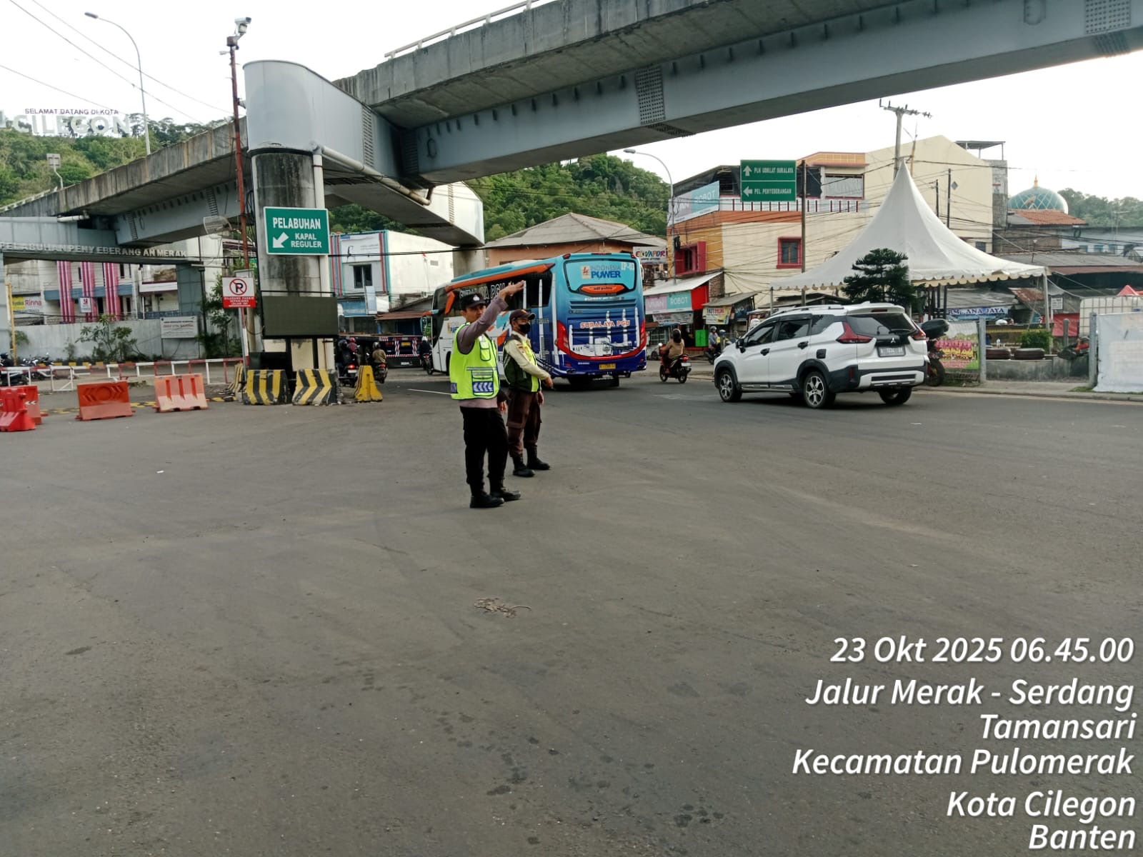 Polsek KSKP Merak Pastikan Kelancaran Arus Kendaraan Menuju Kapal Ferry