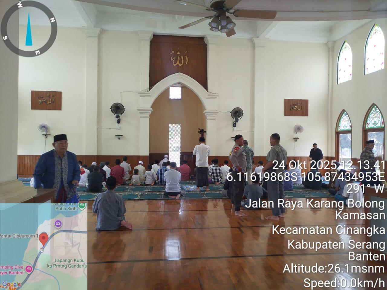 *POLRES CILEGON* - Kapolsek Cinangka Polres Cilegon Polda Banten dan Jajaran melaksanakan giat Juma't keliling dalam rangka silaturahmi menjalin kemitaraan dan menjaga Harkamtibmas di Desa Binaannya sebagai bentuk mendukung Program Quick Wins Presisi Polri, Jumat (24/10/2025).