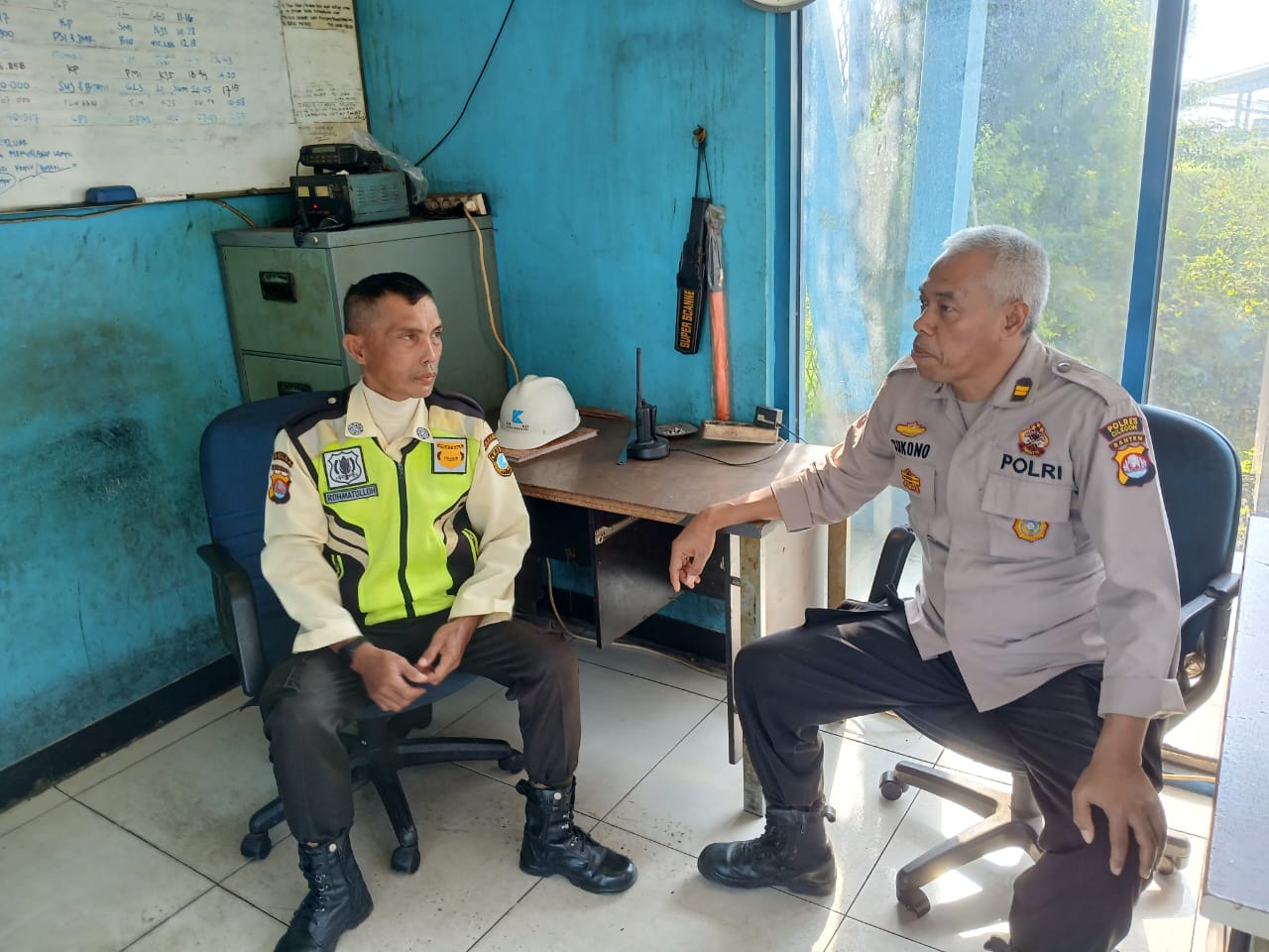 Personil Polsek Kskp Banten memberikan pengarahan dan pembinaan kepada anggota Security yang sedang melaksanakan tugas jaga, agar lebih meningkatkan Pengecekan dan Patroli dalam rangka memelihara Keamanan dan Ketertiban Masyarakat di lingkungannya.