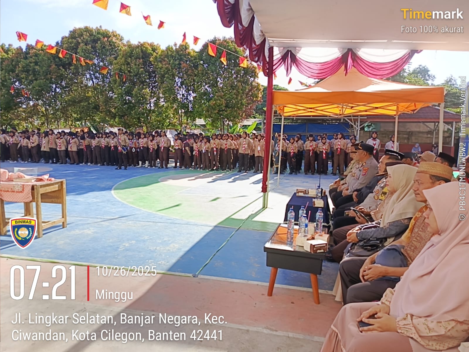 Cilegon - Kasat Binmas IPTU Muhidin dan Wakapolsek Ciwandan AKP Uup M. Ma'ruf Serta Bhabinkamtibmas Polsek Ciwandan menghadiri kegiatan pembukaan Lomba Tangkas Pramuka Se-Banten Tahun 2025 di SMA Al-Khairiyah 4 Cilegon, Minggu (26/10/2025).