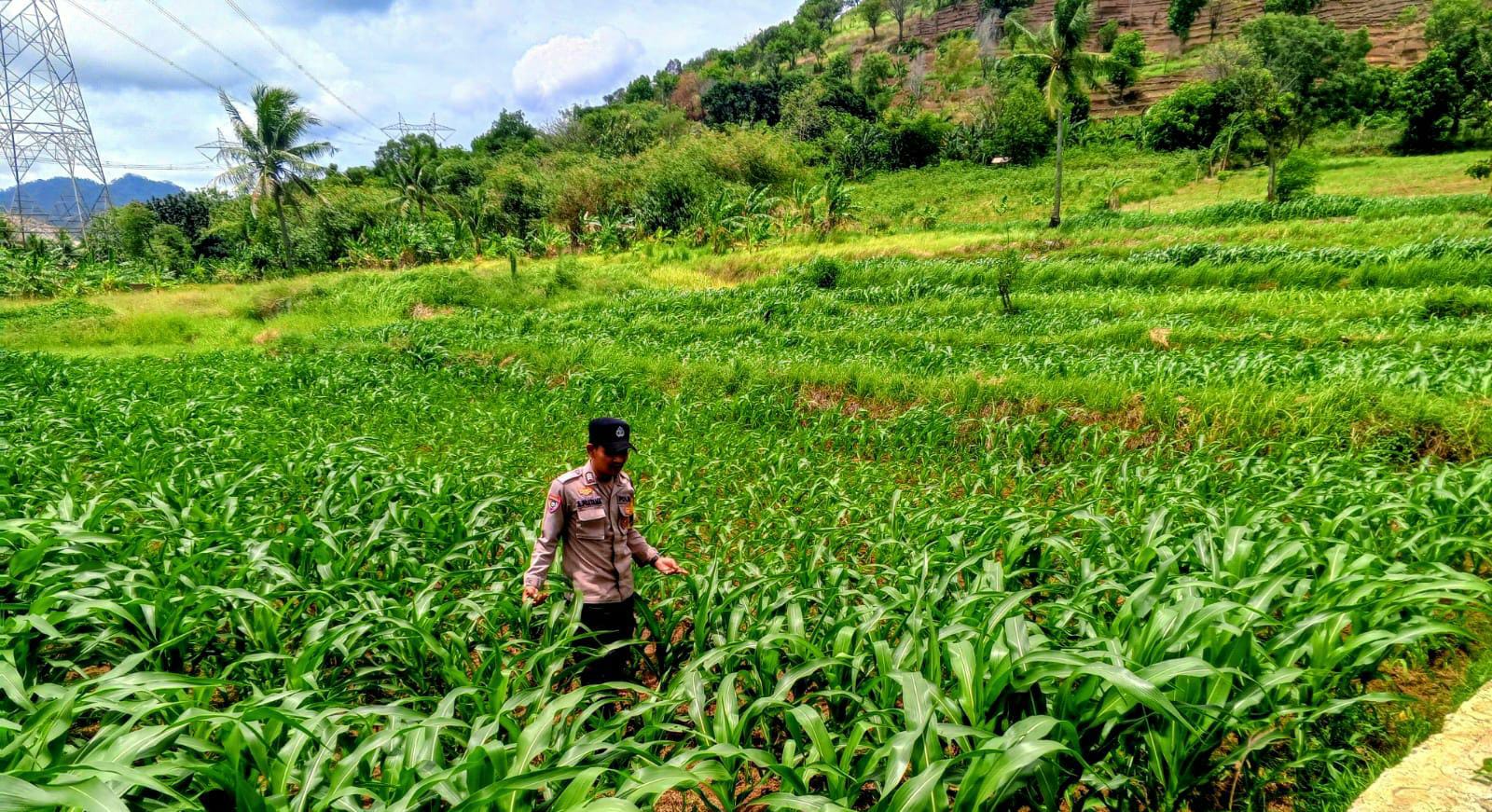 Brigadir Andri Bhabinkamtibmas Bersama Petani Kontrol Perkembangan Ketahanan Pangan Jagung Pipil di Lahan