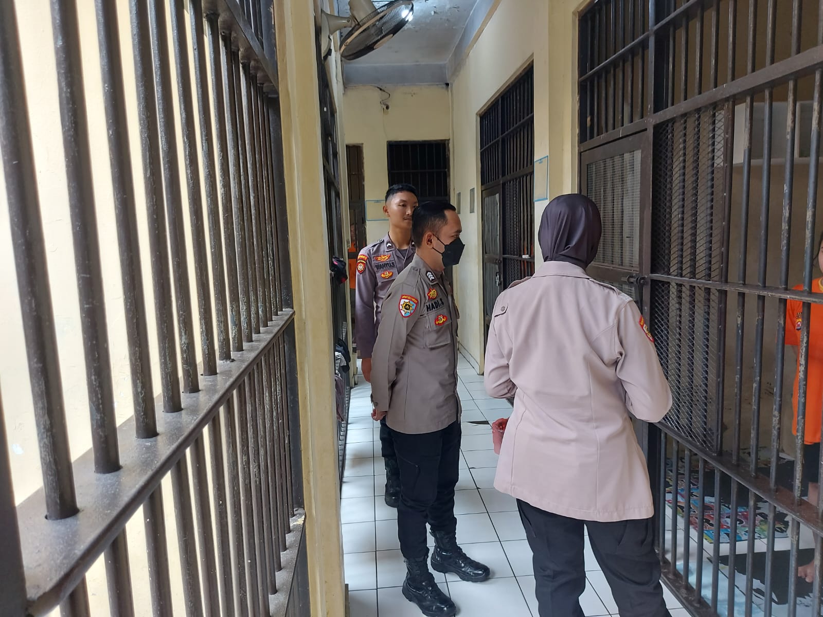 personel seksi pegawasan Polres Cilegon memeriksa Kondisi di Dalam Rutan Polres Cilegon. Cilegon,Polres Cilegon Polda Banten Pada senin/27/10