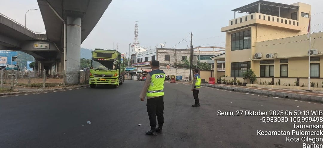 Cilegon - Dalam rangka peningkatan pelayanan prima kepada masyarakat, Kskp Merak Polres Cilegon Polda Banten melaksanakan pengaturan antrian R4 yang akan masuk ke Kapal Ferry di Pelabuhan Merak, Senin (27/10/2025).