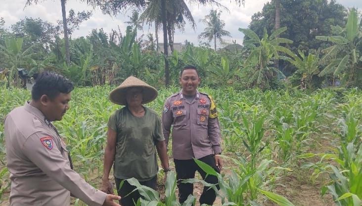 Pada kesempatan tersebut personil bhabinkamtibmas polsek Cibeber Polres Cilegon Polda Banten meninjau langsung lahan pertanian Jagung milik warga Binaan Lingkungan kelurahan Karang Asem Kec. Cibeber.