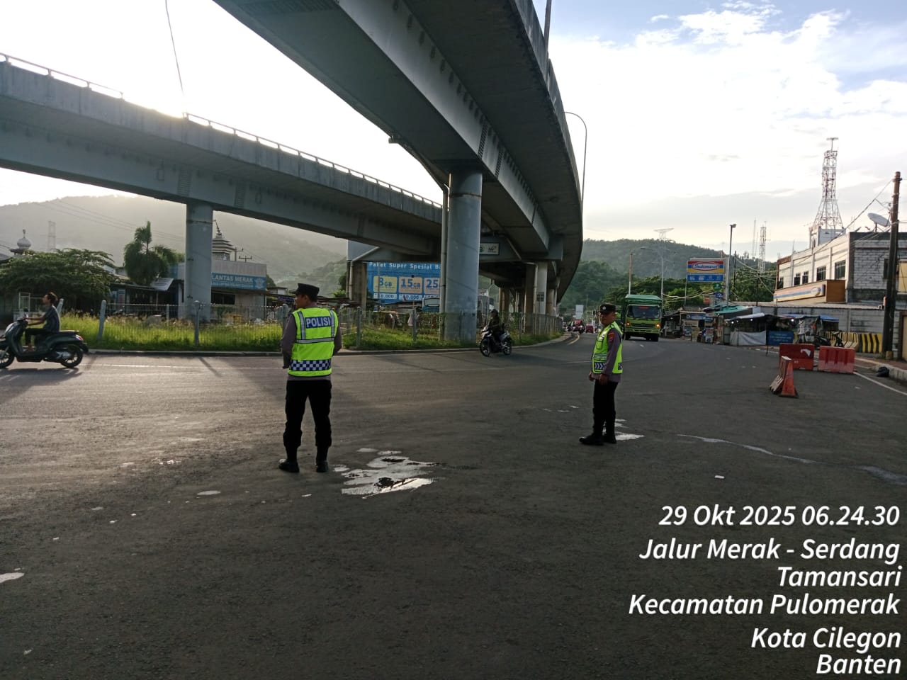 Polsek KSKP Merak Polres Cilegon Polda Banten Siaga Atur Arus Kendaraan Menuju Kapal Ferry