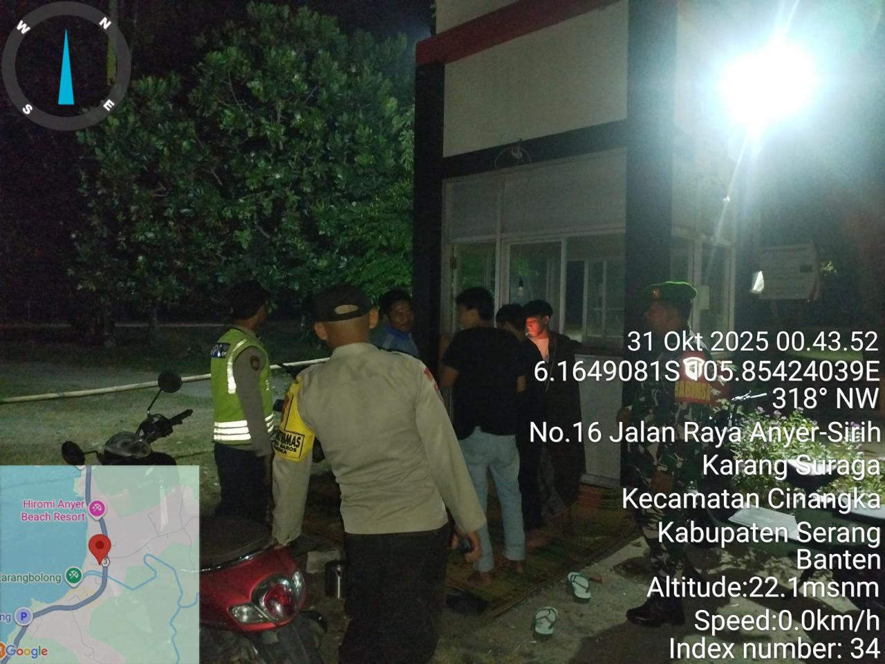 *Cilegon* – Dalam Rangka Pencegahan Kejahatan Jalanan dan Memelihara situasi keamanan dan menjaga serta memberikan rasa aman dan nyaman di masyarakat,Salah satu upaya untuk mewujudkan hal tersebut sebagaimana yang dilakukan oleh Personil Polsek Cinangka Polres Cilegon Polda Banten melaksanakan giat patroli blue light malam hari hingga menjelang pagi, Jumat (31/10/2025).