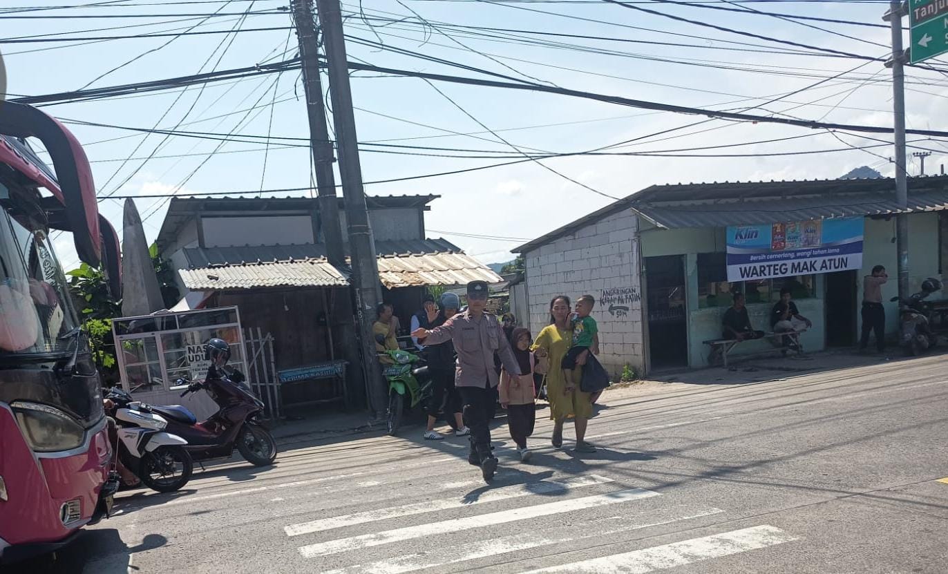 Polsek Anyar Melakukan Pengaturan Lalu Lintas Pada Jalur Anyar - Cinangkaq