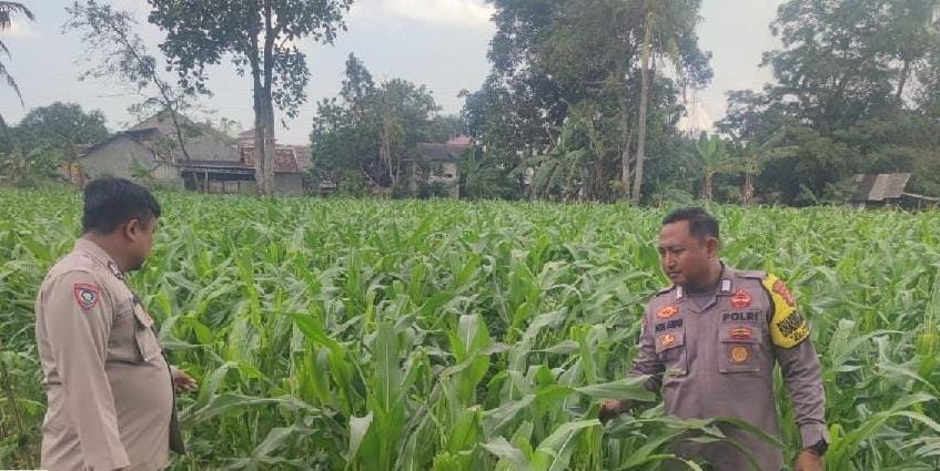 Implementasi Program Asta Cita, personil bhabinkamtibmas polsek Cibeber monitoring di perkebunan Jagung*