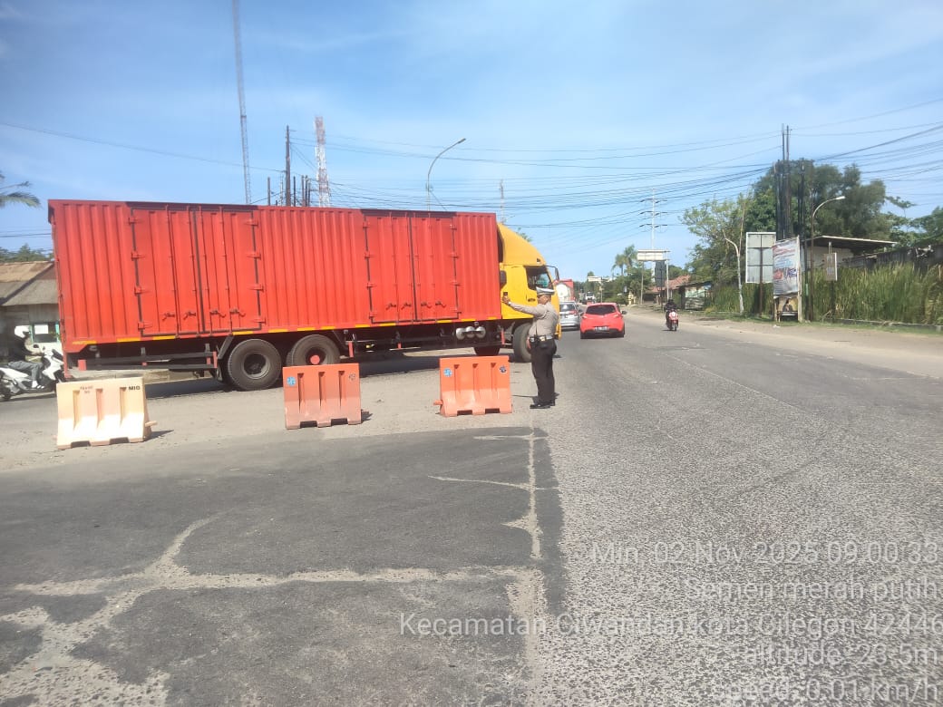 Cilegon - Weekend kali ini Personil Unit Lantas Polsek Ciwandan Polres Cilegon Polda Banten melaksanakan pengaturan lalu lintas di Simpang JLS tepatnya di Pertigaan depan PT. Semen Indonesia Demi Kelancaran Arus Lalu-lintas Wisata, Minggu (02/11/2025).