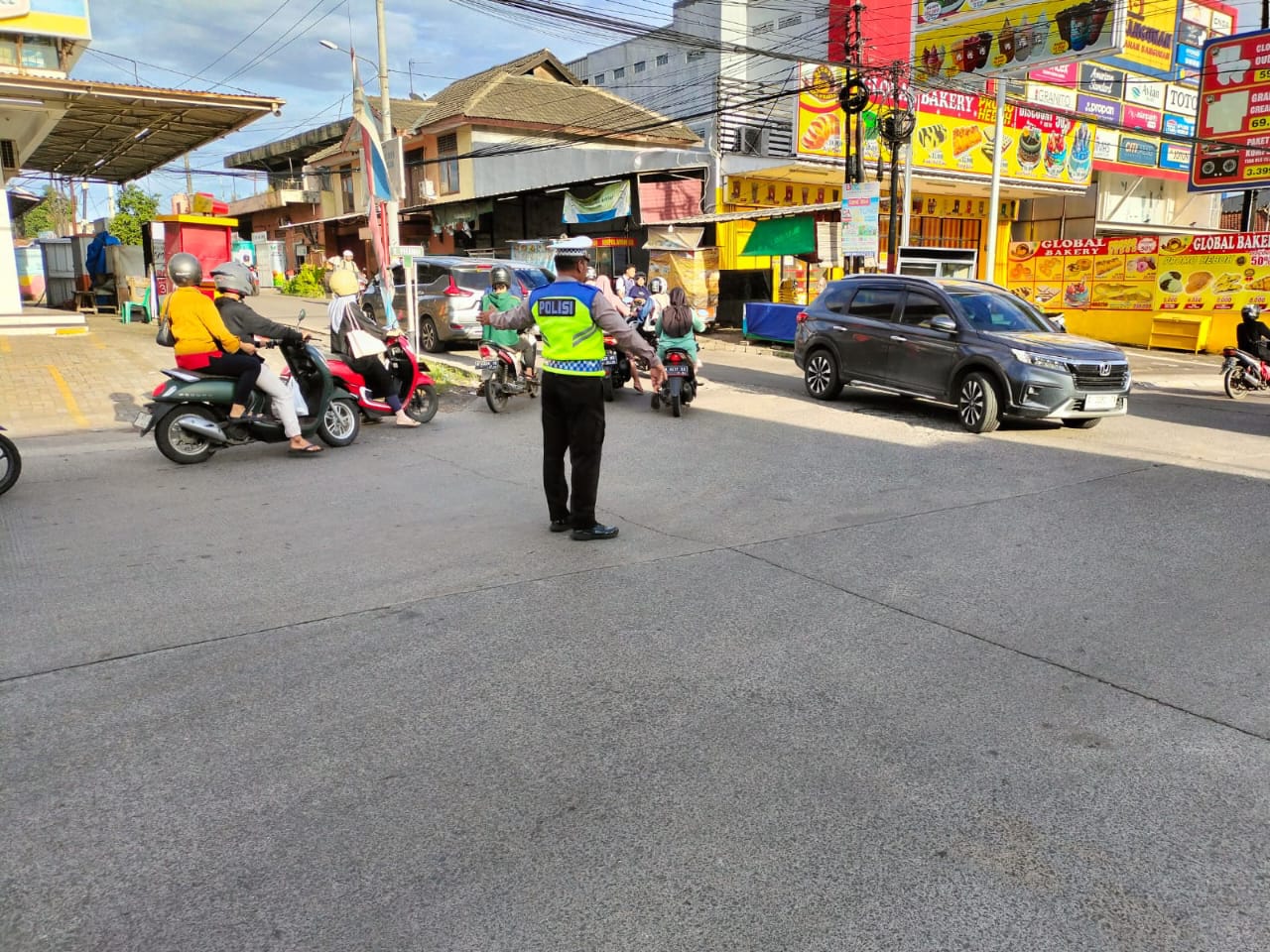 Polsek Cilegon Polres Cilegon pengaturan arus lalu lintas lancarkan arus kendaraan.