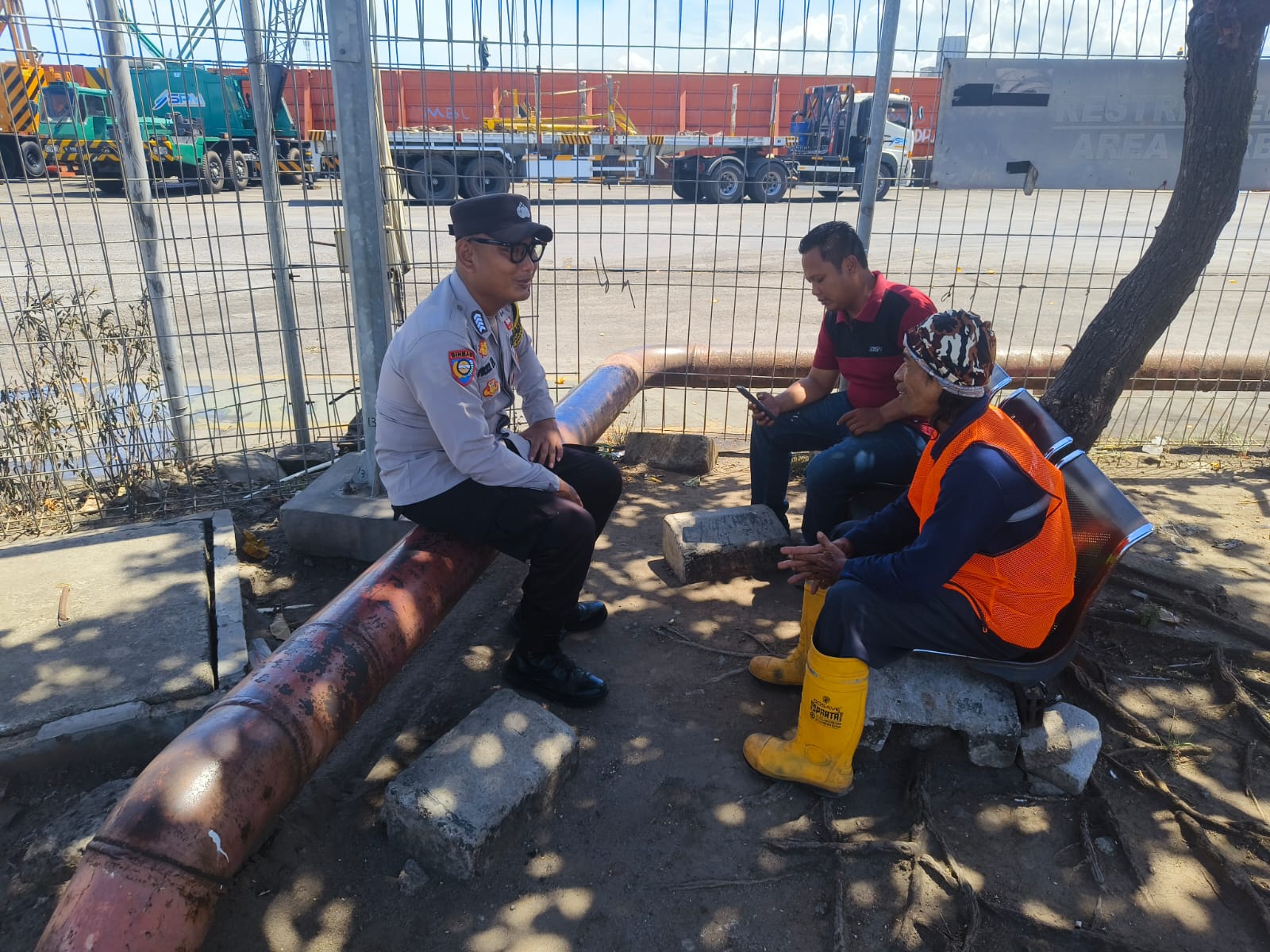Jalin Silaturahmi, Bhabinkamtibmas Pelabuhan Polsek KSKP Banten berbincang ke Buruh Pelabuhan