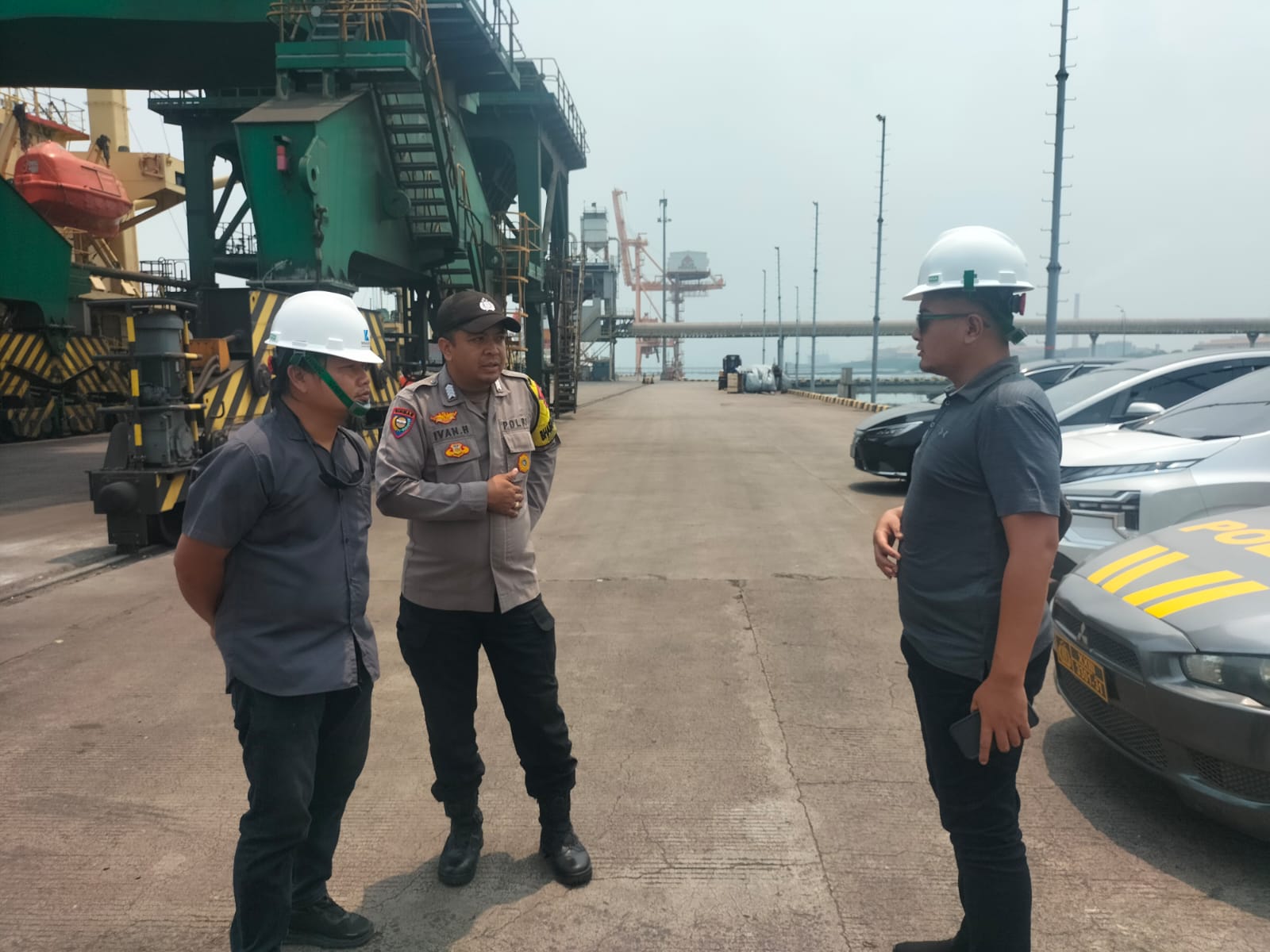 Jalin Silaturahmi, Bhabinkamtibmas Pelabuhan Polsek Kawasan Pelabuhan Banten berbincang dengan Buruh Pelabuhan