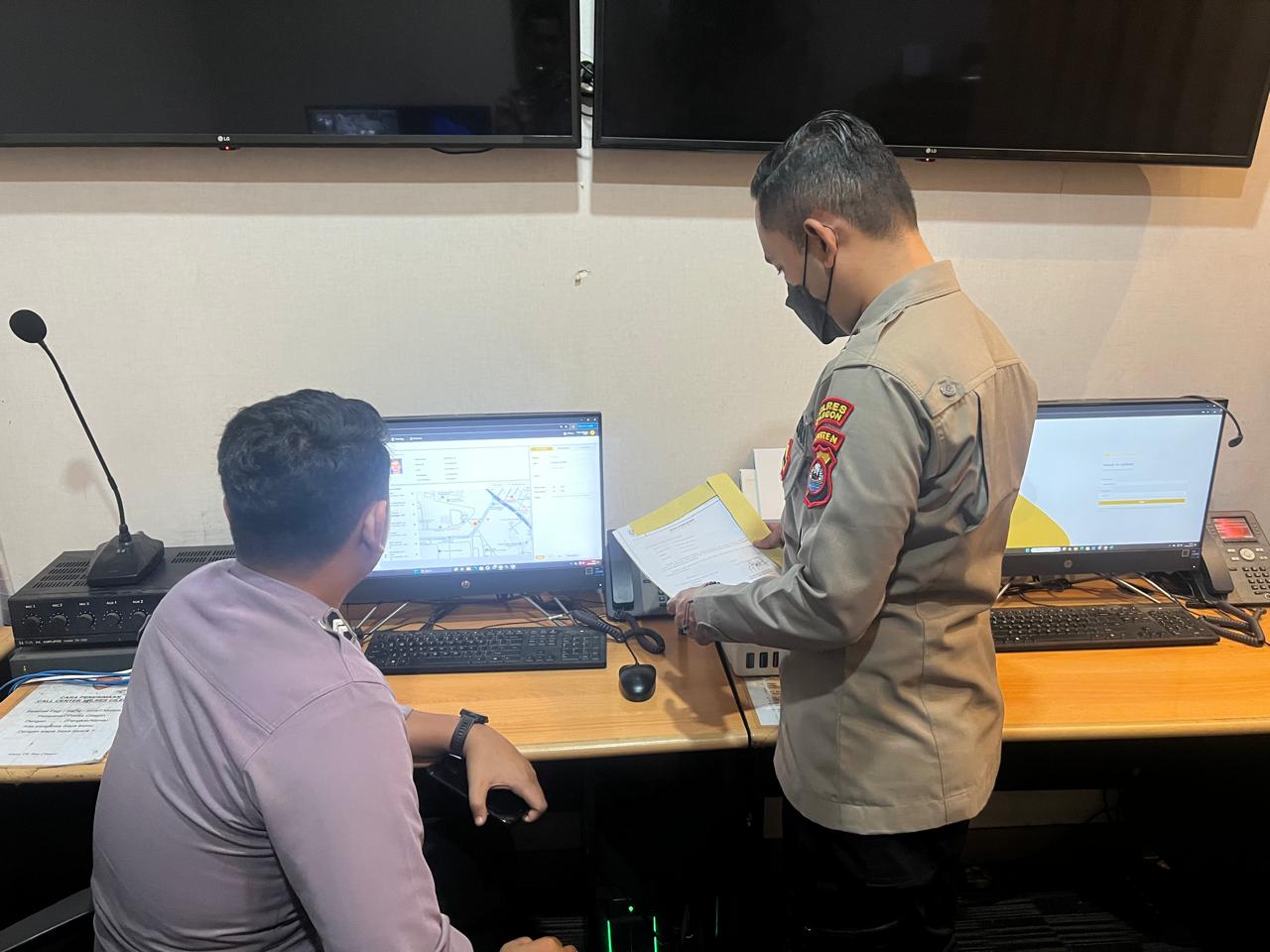Cilegon,Polres Cilegon Polda Banten Pada Kamis/06/11/2025 Pukul 10.00 Wib, Aipda Emy Prasetyo Personil siwas melaksanakan Pengechekan pada piket jaga 110 Polres Cilegon.