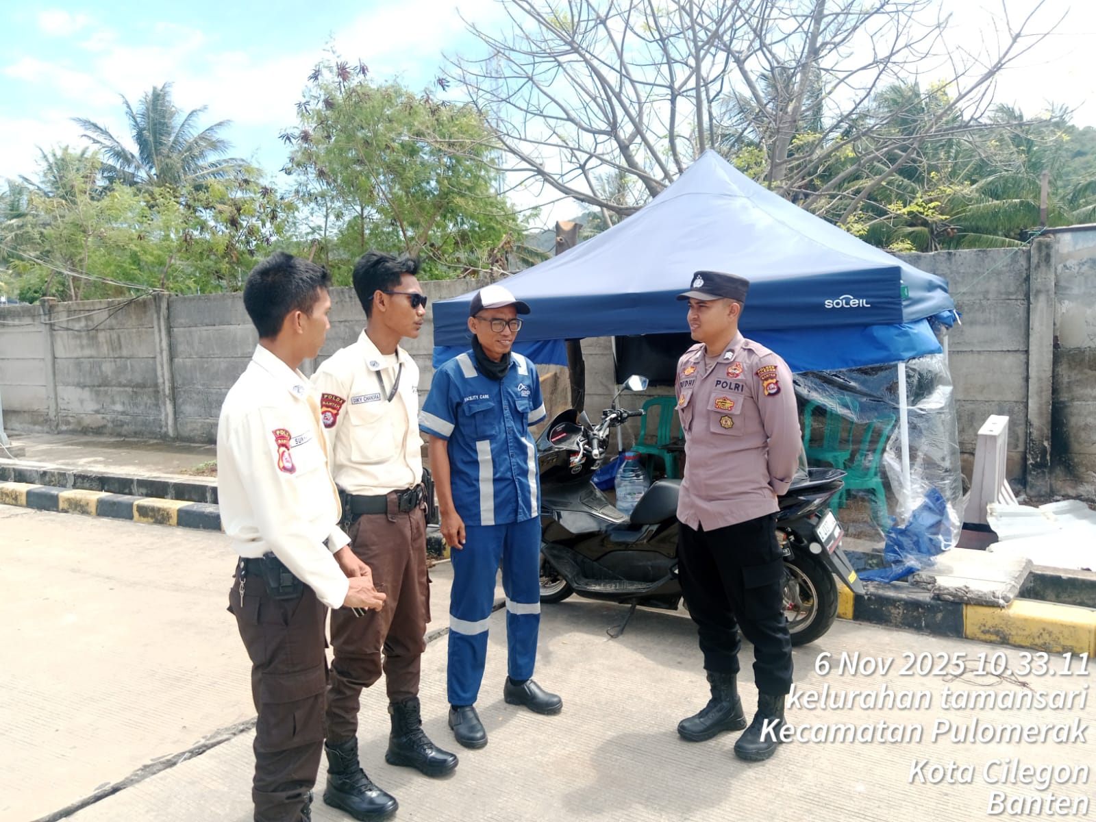 Kapolres Cilegon Polda Banten AKBP Martua Raja Taripar Laut Silitonga Melalui Kapolsek Kskp Polres Cilegon Polda Banten AKP Gusti Almasri P mengatakan Bhabinkamtimbmas Polsek Kskp Rutin menyambangi anggota Scurity dan memberikan himbauan agar para anggota Scurity bisa melaksanakan tugas menjaga keamanan di Kawasan Pelabuhan Merak.