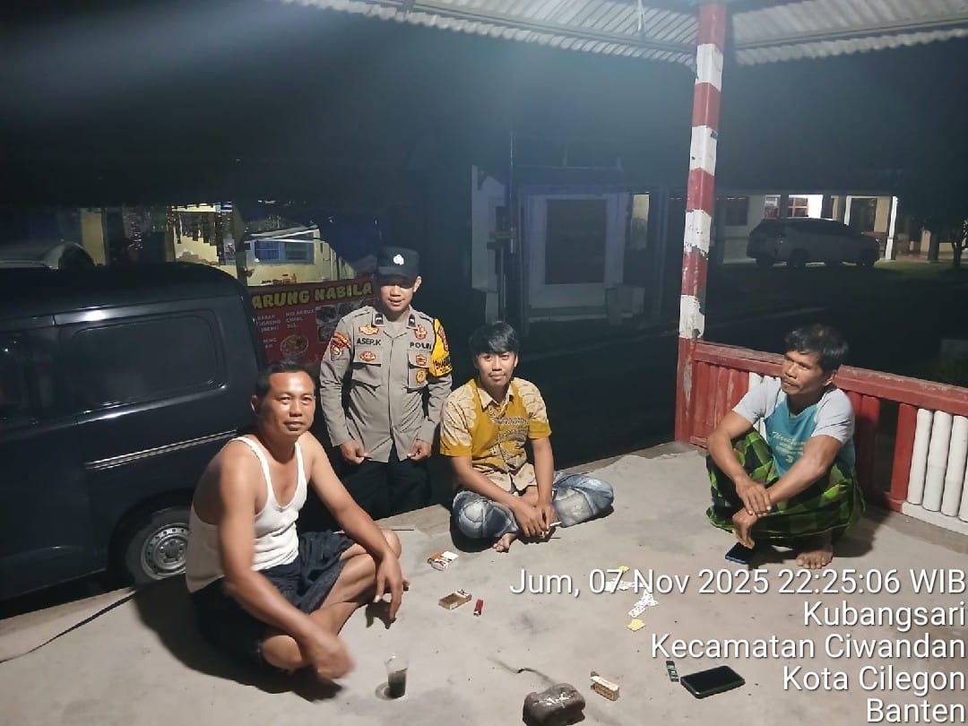 Cilegon - Guna Mencegah Terjadinya Tindak Kejahatan dan Menggiatkan Patroli Pos Ronda Siskamling di Pemukiman warga masyarakat,Personil Polsek Ciwandan Polres Cilegon Polda Banten Mengajak dan memantau pelaksanaan ronda siskamling di lingkungan daerah hukum Polsek Ciwandan, Sabtu (08/11/202).
