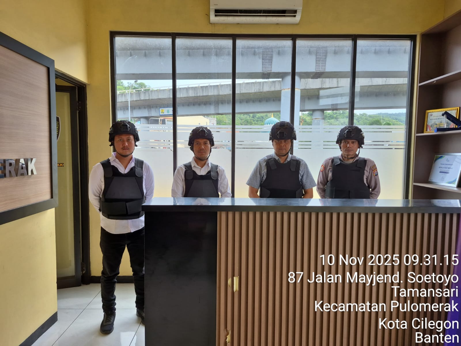 Cilegon - Personel piket jaga Polsek Kskp Merak Polres Cilgon Polda Banten melaksanakan siaga 1 Polsek pelaksanaan Sispam Mako oleh piket siaga dipimpin oleh Kspk Polsek Kskpy Merak Polres Cilegon Polda Banten, Senin (10/11/2025).