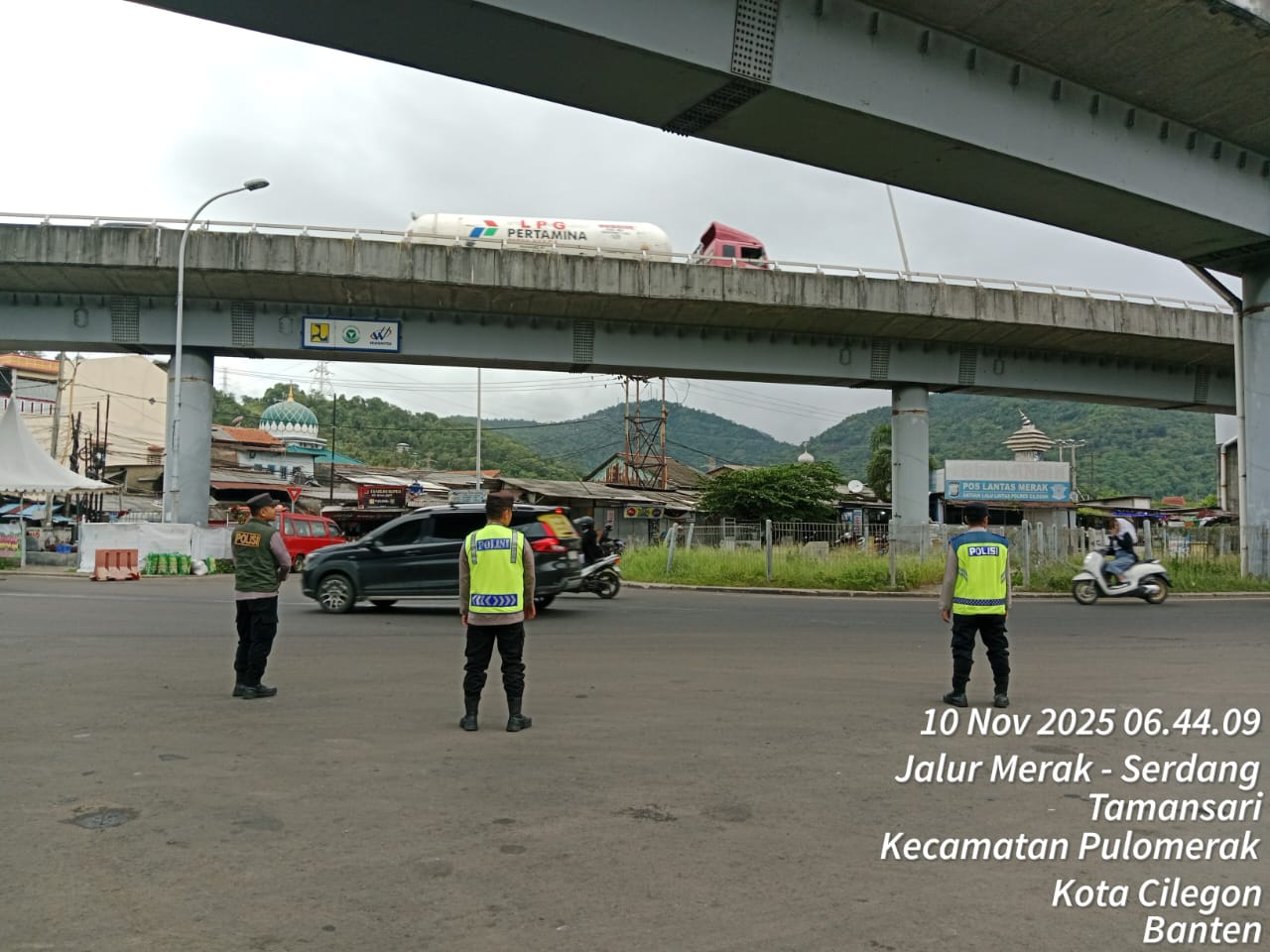 Cilegon - Personil Polsek Kskp Merak Polres Cilegon melaksanakan patroli di kawasan pelabuhan merak memberikan rasa aman dan damai, Senin (10/11/2025)