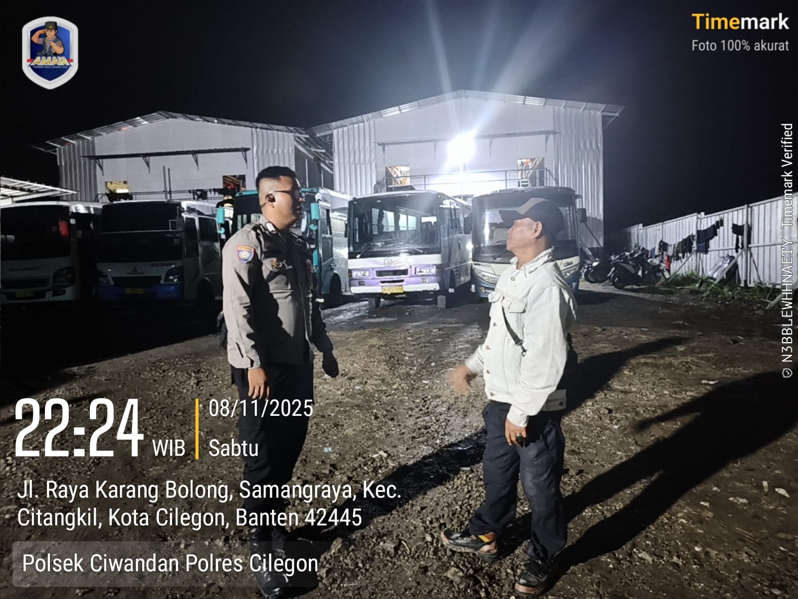 Cilegon - Upaya mengantisipasi aksi kejahatan pada daerah binaan dan memberikan rasa aman dan nyaman kepada warga binaan, Bhabinkamtibmas Polsek Ciwandan Polres Cilegon Polda Banten sambangi warga pada malam hari, Swnin (10/11/2025).
