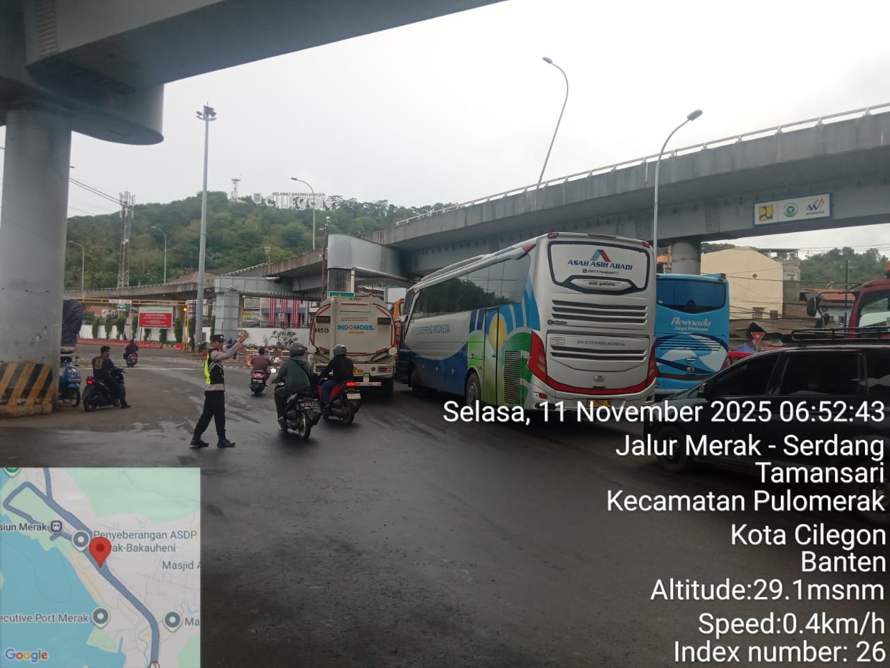 Personel KSKP Merak Polres Cilegon Laksanakan Pengaturan Kendaraan di Pelabuhan Merak